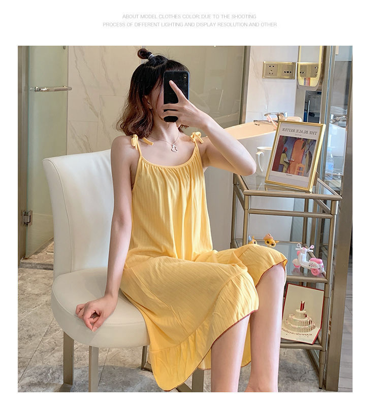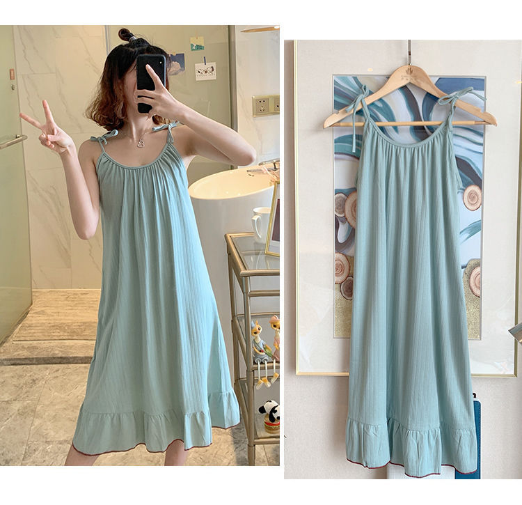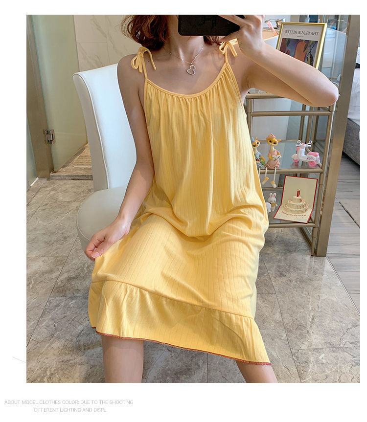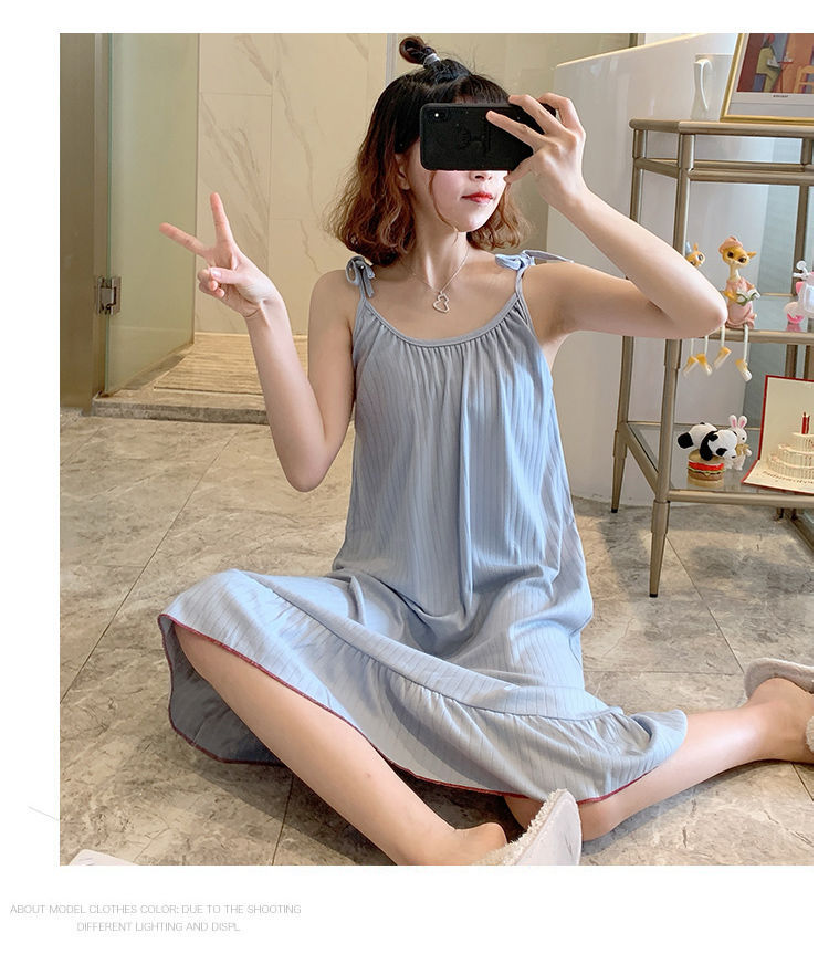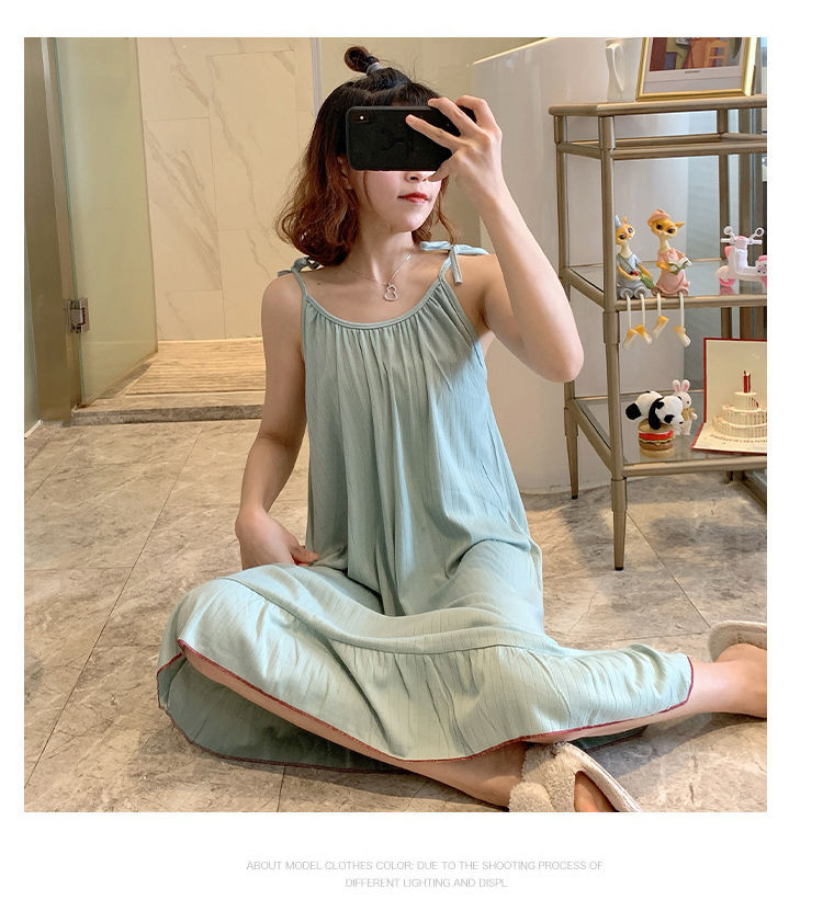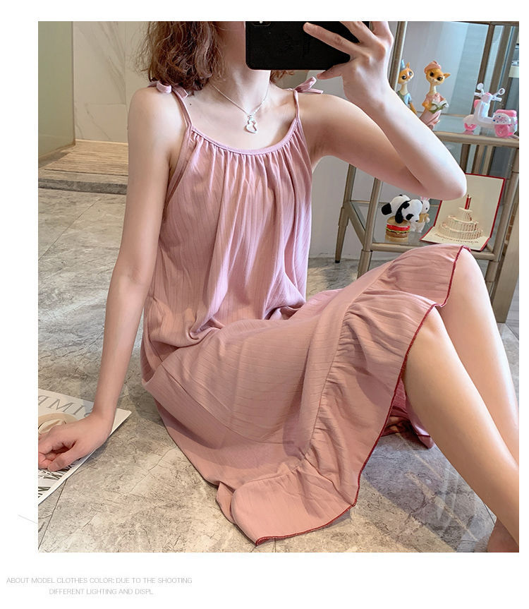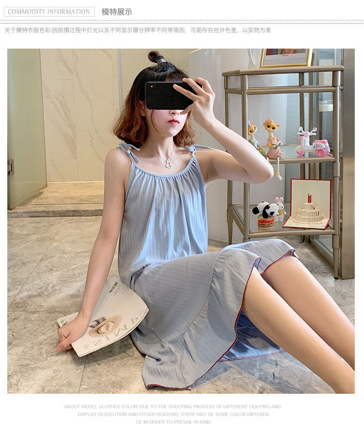 동남아시아 크로스 보더 슬링 잠옷 여성 여름 섹시한 학생 플러스 사이즈 느슨한 귀여운 인터넷 연예인 공주 단색 잠옷