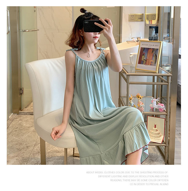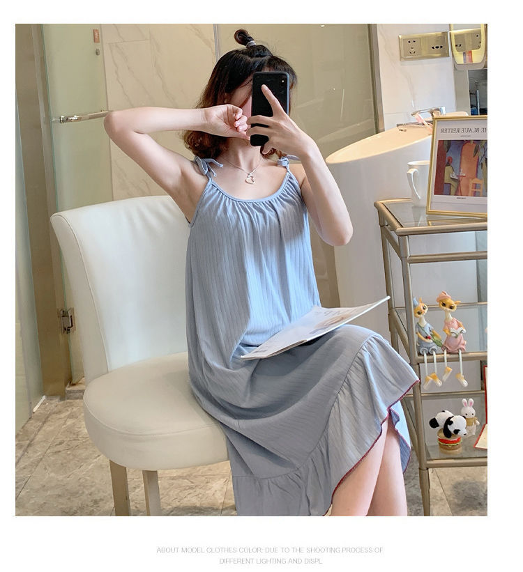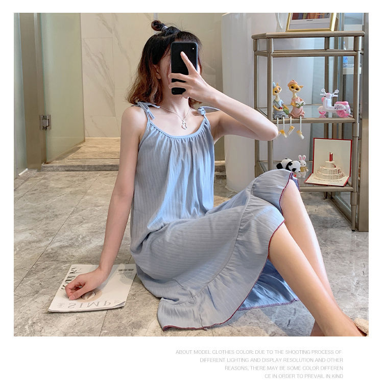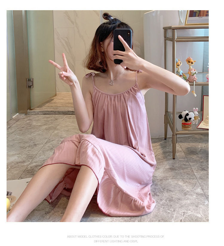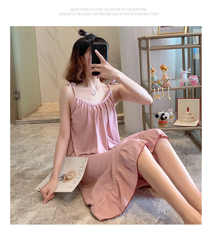 동남아시아 크로스 보더 슬링 잠옷 여성 여름 섹시한 학생 플러스 사이즈 느슨한 귀여운 인터넷 연예인 공주 단색 잠옷스토어 가기