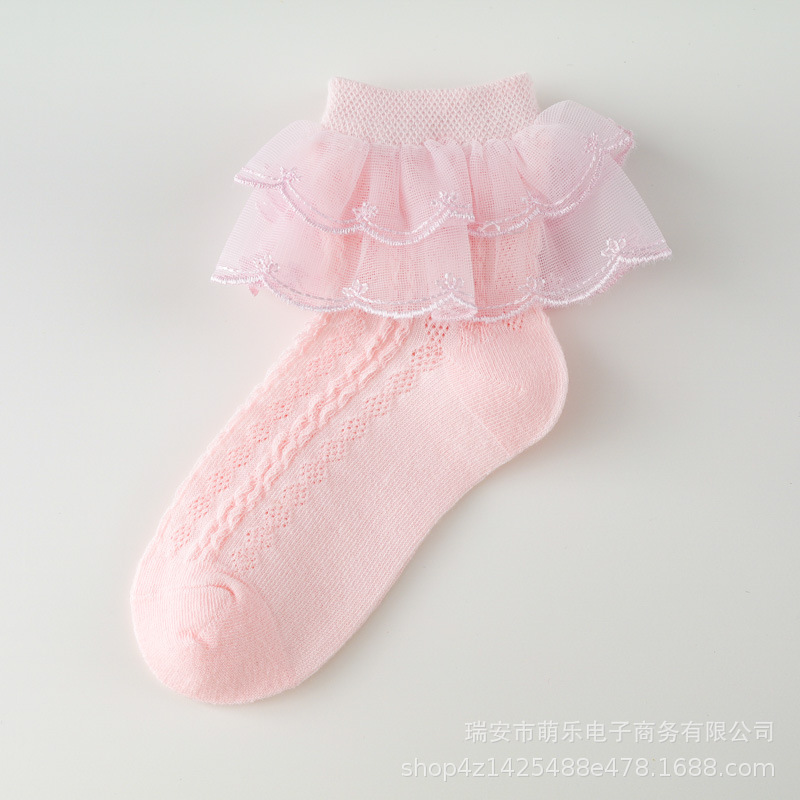 2023 봄과 여름 새로운 면 레이스 소녀 레이스 양말 더블 레이스 공주 양말 1-12 년 라틴 댄스 양말