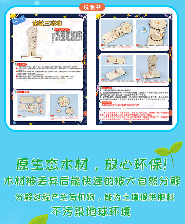 국경 간 기계 나무 장난감 DIY 기어 트리플 링키지 기술 소규모 생산 교육용 어린이 장난감 창작 공예스토어 가기