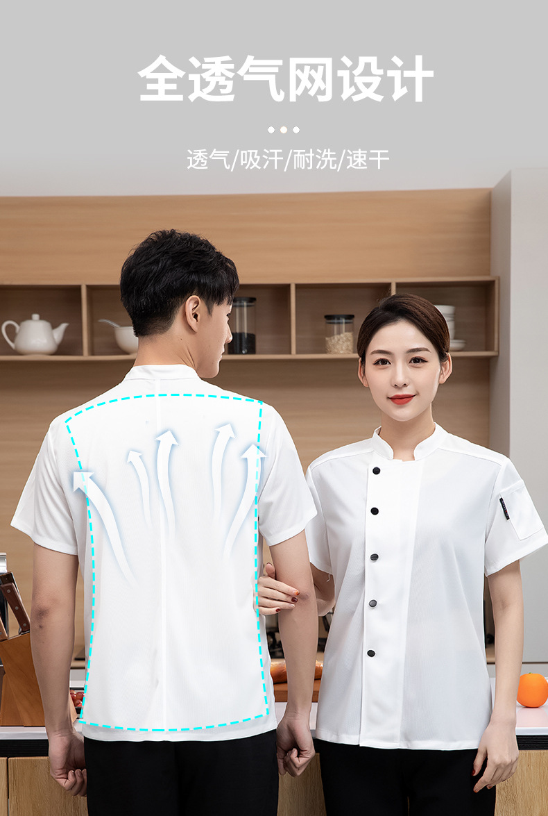 전신 통기성 메쉬 요리사 작업복 반팔 남성 여름 얇은 다이닝 호텔 매점 레스토랑 후면 주방 작업복