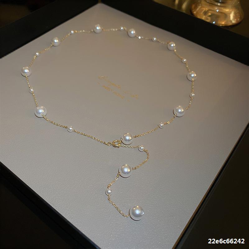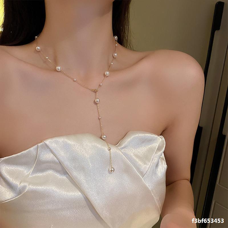 한국 심플 롱 진주 목걸이 패션 디자인 감각 쇄골 체인 Y 자 모양의 개성 만능 목걸이