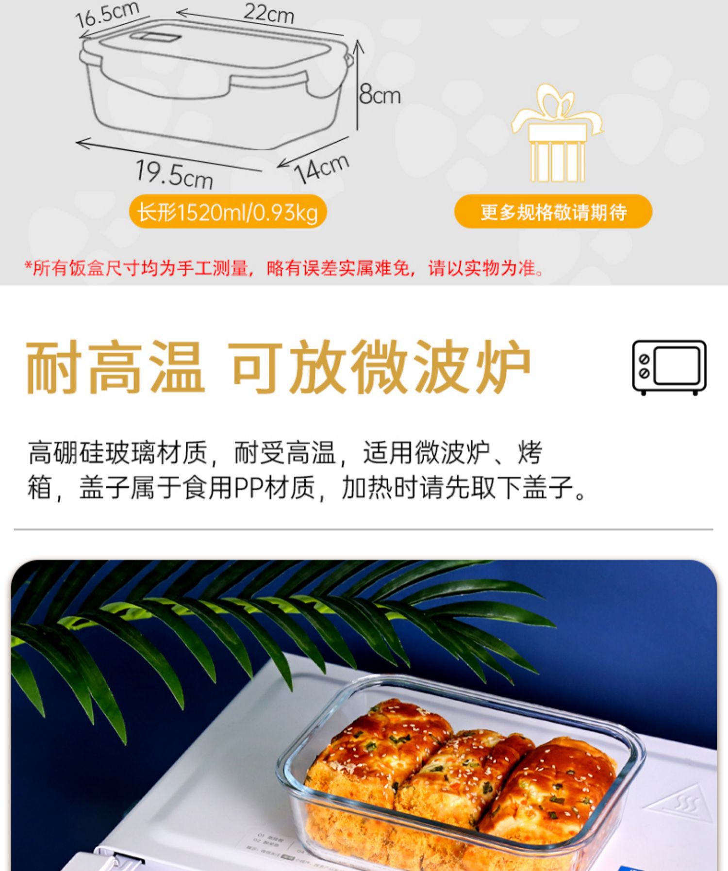 고붕규산 유리 도시락, 전자레인지 가열, 밀폐, 냉장고 냉동, 뚜껑 포함, 신선도 유지, 수프 그릇, 밀폐스토어 가기