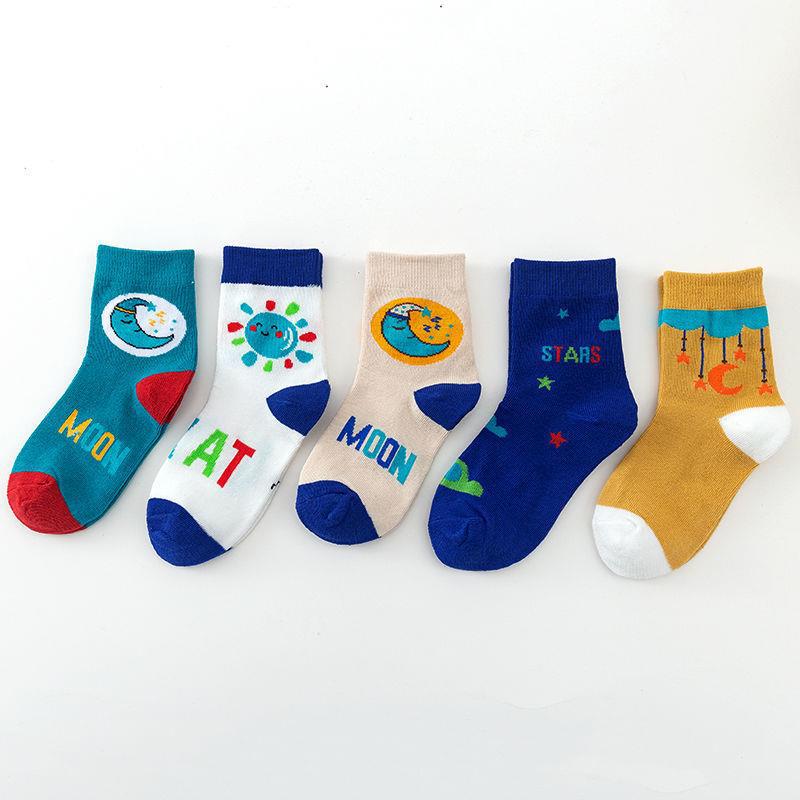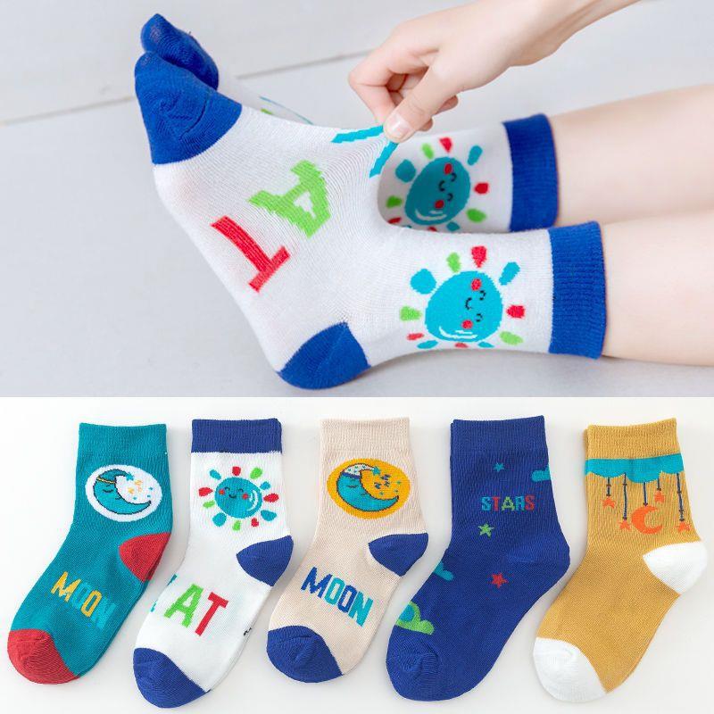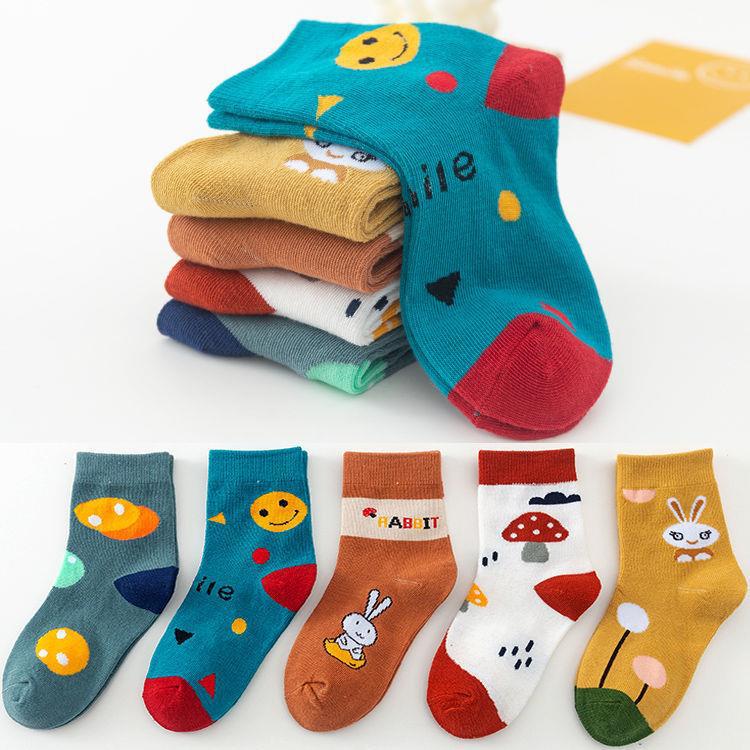 5 쌍의 어린이 양말 남성용 다목적 봄과 여름 양말 아기 큰 어린이 잘 생긴 스타킹 소녀 가을과 겨울 양말 높은 튜브