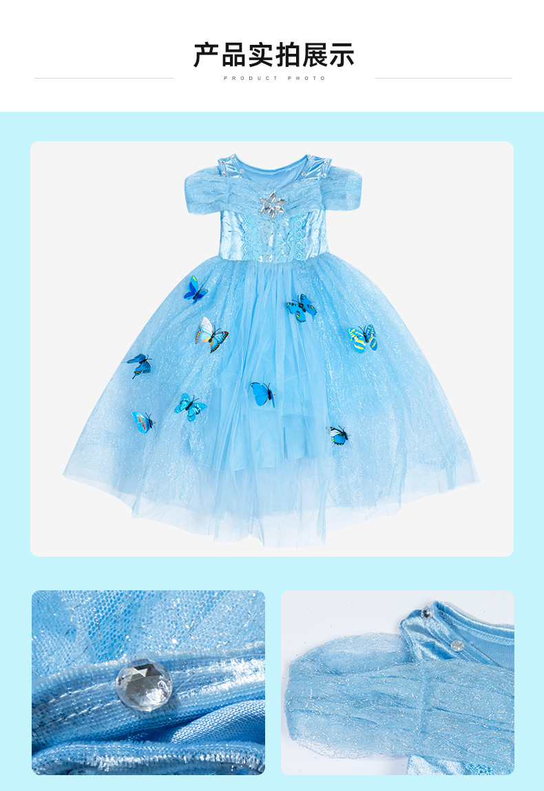 소녀 엘사 공주 원피스 반소매 냉동 엘사 원피스 봄과 여름 새로운 대외 무역 아동복 도매