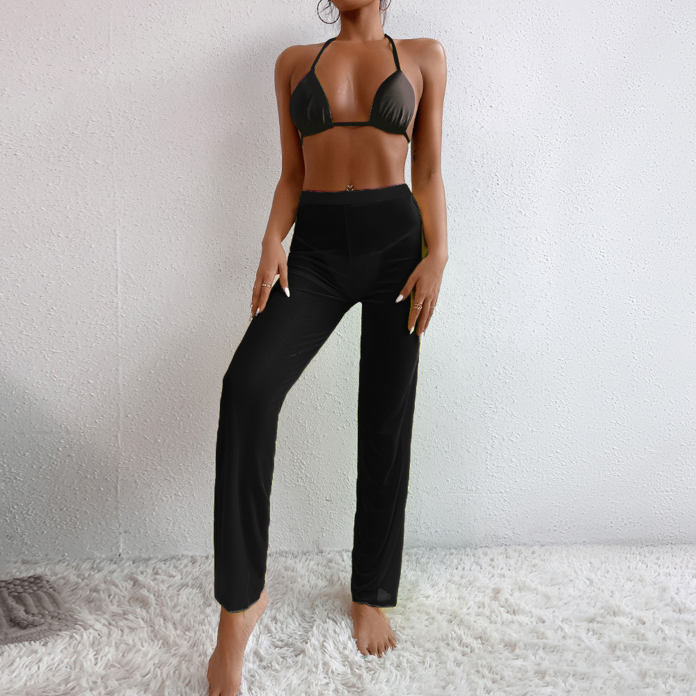 2023 수영복 3 피스 비키니 스플릿 섹시한 관점 메쉬 바지 단색 수영복 유럽과 미국 대외 무역 수영복스토어 가기