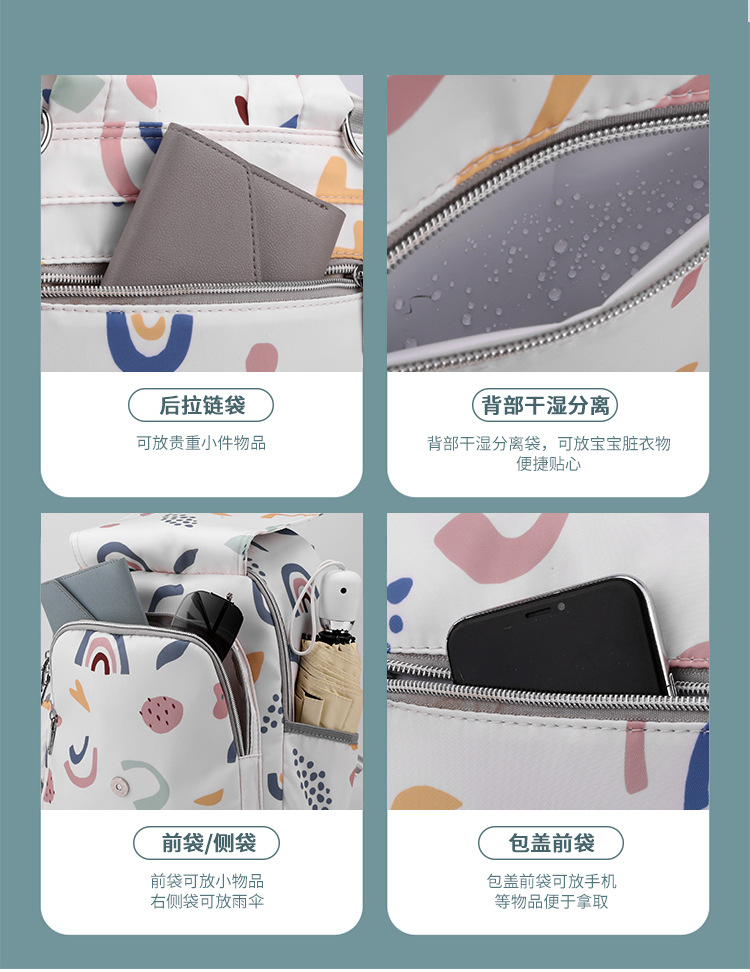 꽃 플랩 어머니 가방 경량 야외 여행 여행 미라 가방 더블 숄더 휴대용 멀티 구획 카트 행잉 백