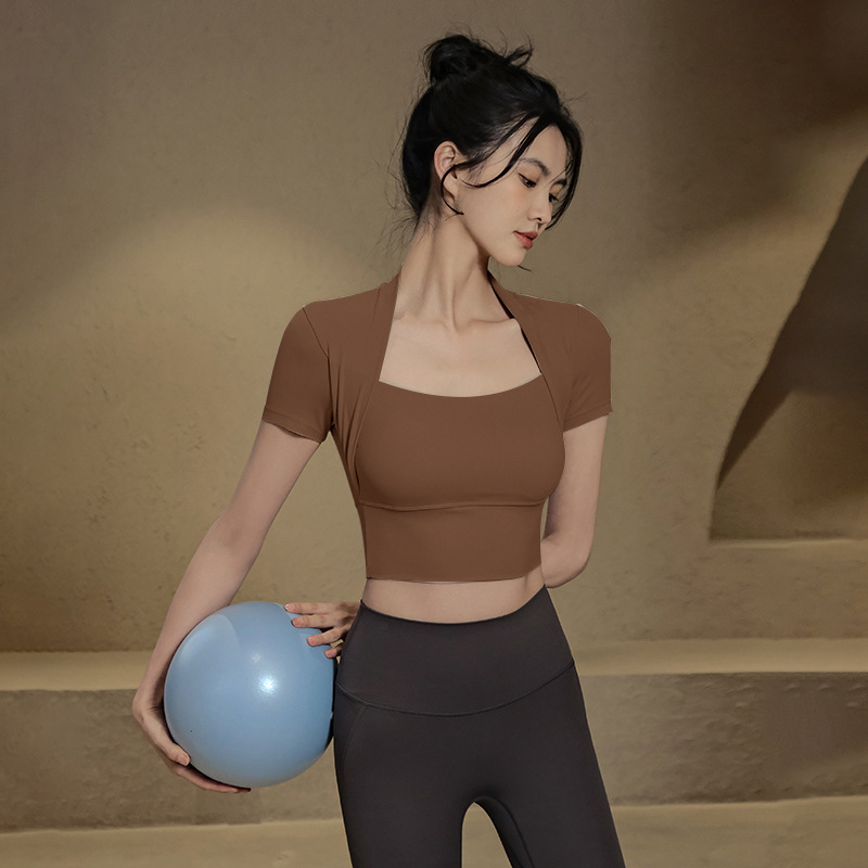 요가 의류 여성용 여름 스포츠 탑 겉옷 달리기 속건 슬리밍 반팔 티셔츠 필라테스 트레이닝 피트니스 의류스토어 가기