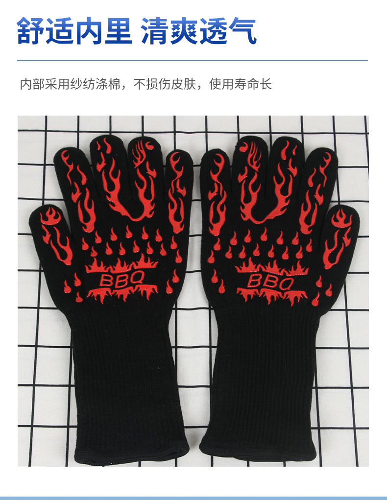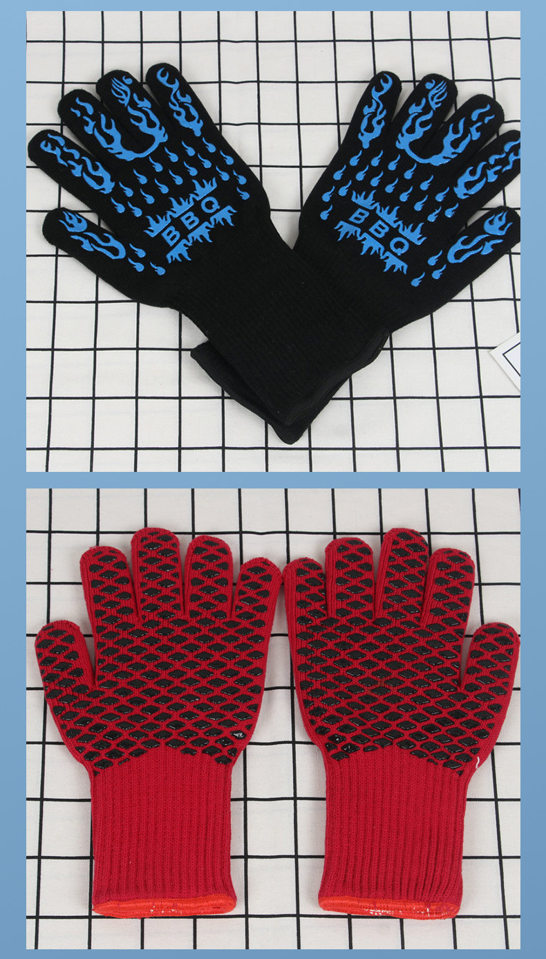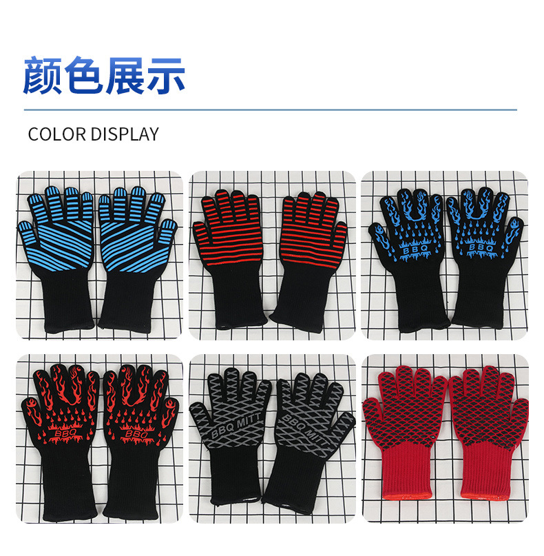 실리콘 단열 바베큐 고온 장갑 주방 베이킹 난연성 내화 방지 미끄럼 방지 전자 오븐 안티 스케일 장갑