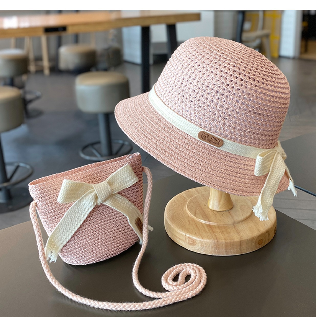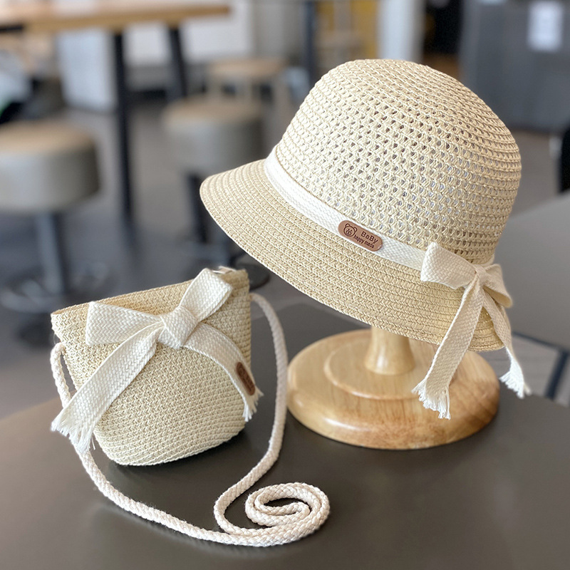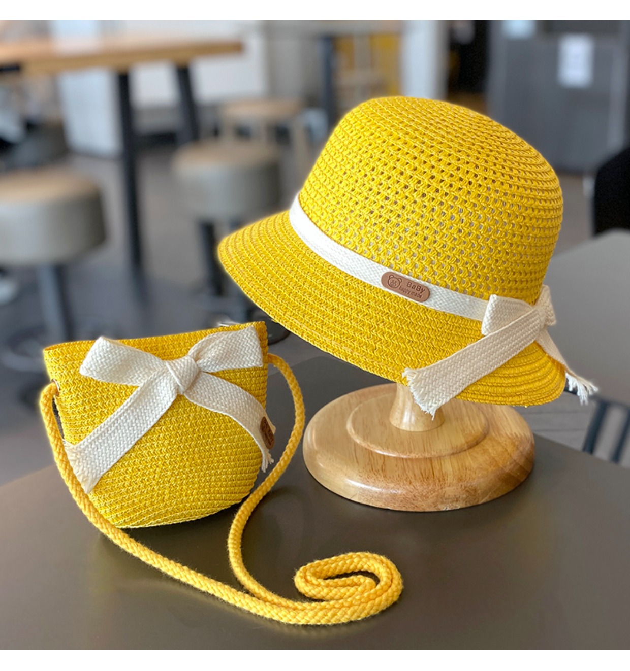 여름 한국식 차양 밀짚 모자 여아 모자 여성용 보물 해변 어린이 가방 자외선 차단제 모자 어린 소녀 태양 어부 여름스토어 가기