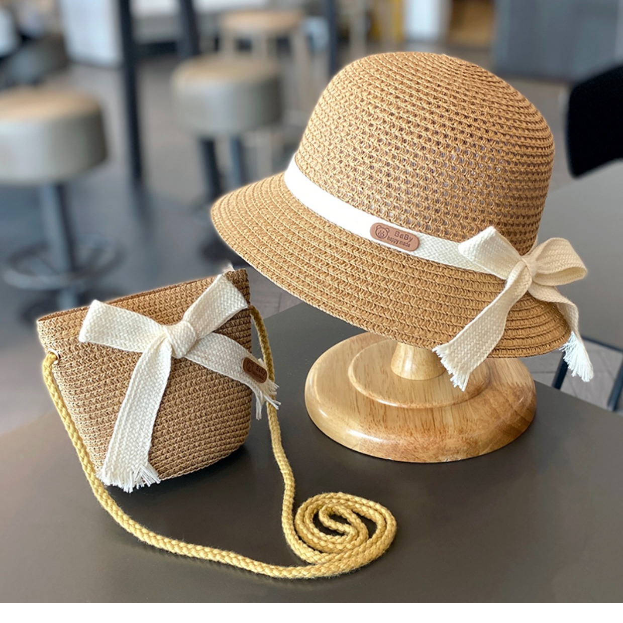 夏季韩版遮阳草帽女童帽子女宝沙滩儿童包防晒帽小女孩太阳渔夫夏