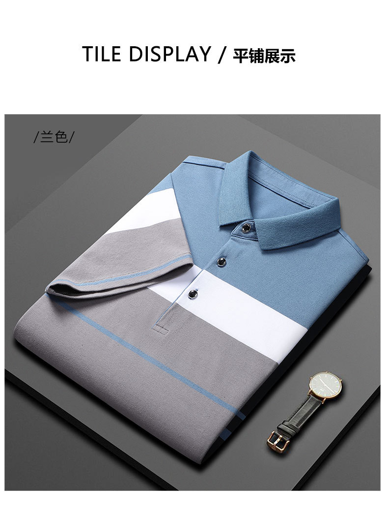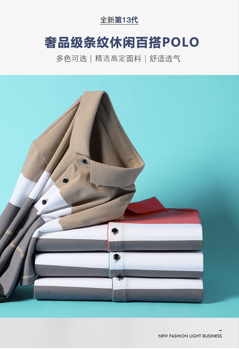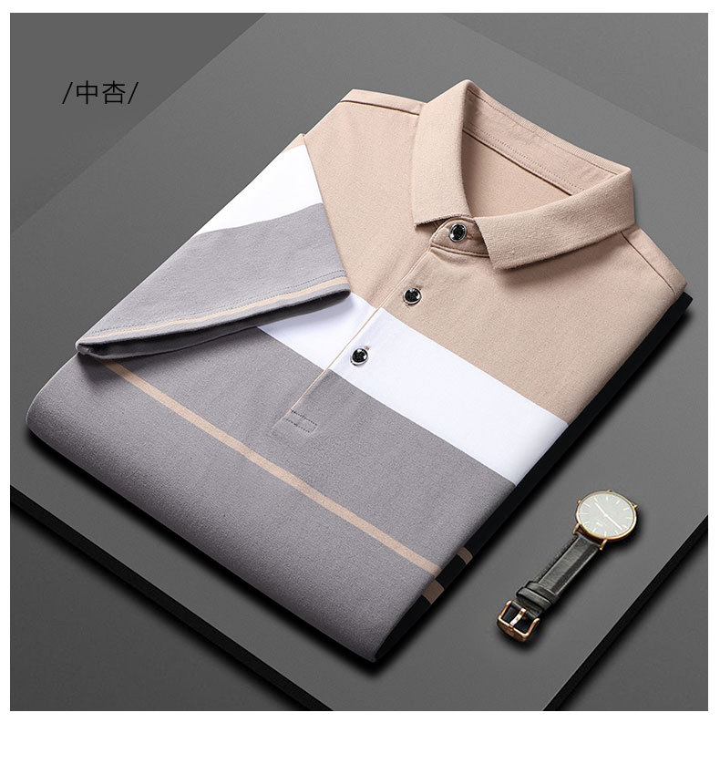 Bin Jie가 엄선한 여름 고급 남성 스트라이프 반팔 티셔츠 면 얇은 비즈니스 라펠 남성 폴로 셔츠스토어 가기