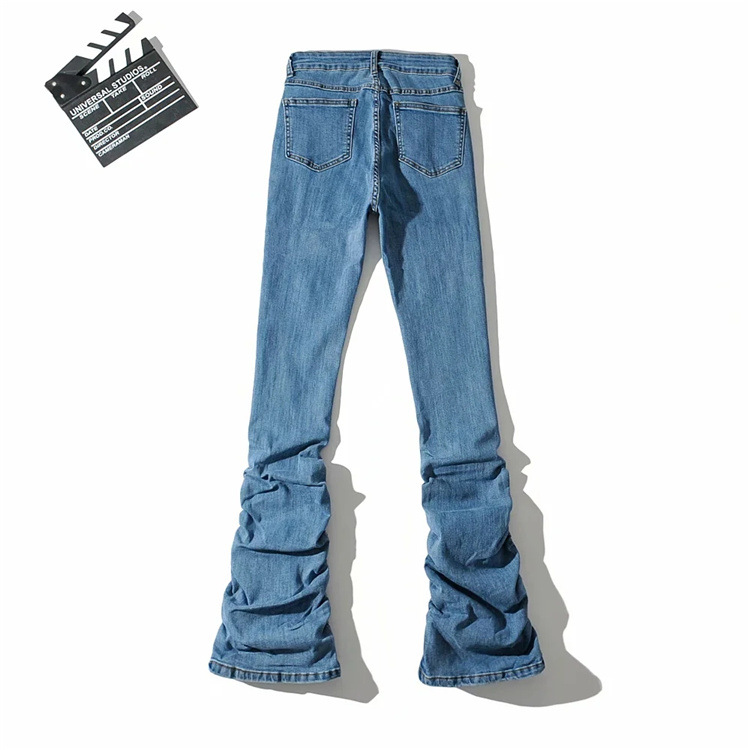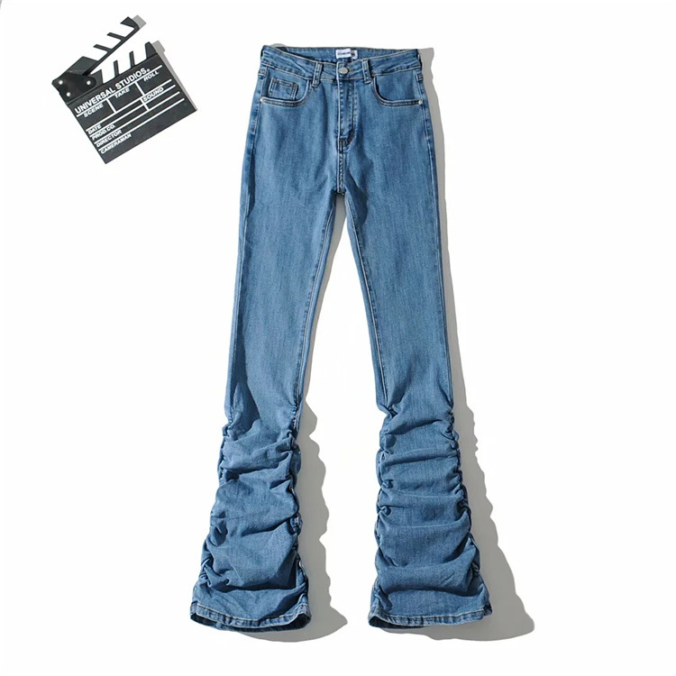 틈새 디자인 감각 주름 마이크론 청바지 가을 새로운 모든 매치 하이 웨이스트 슬리밍 독특한 바지 여성 바닥 바지스토어 가기
