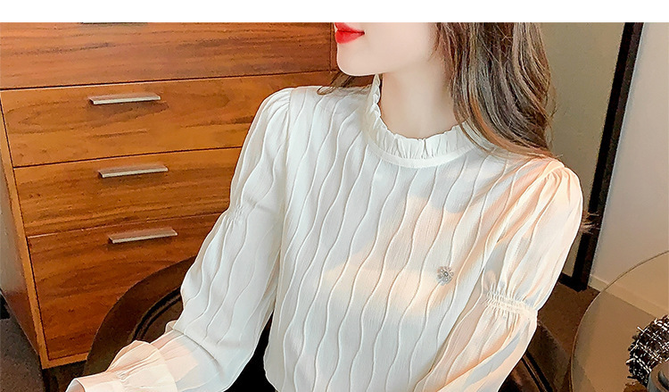 곰팡이 스탠드 칼라 쉬폰 셔츠 여성용 긴팔 탑 봄과 가을의 새로운 여성 디자인 감각 외국식 틈새 스몰 셔츠 트렌드
