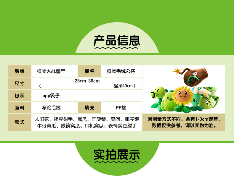 식물 대 좀비 2 봉제 장난감 인형 어린이 선물 완두콩 사수 Wogua 해바라기 인형 베개스토어 가기