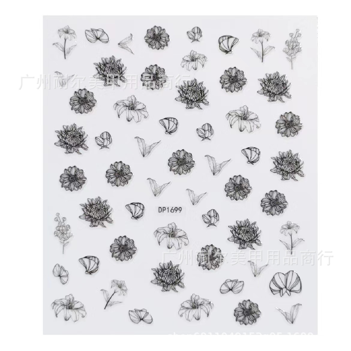 크로스 보더 소스 네일 아트 스티커 다크 블랙 라인 아트 스케치 꽃 DP1698-1703 절묘한 공예 독립 복장스토어 가기