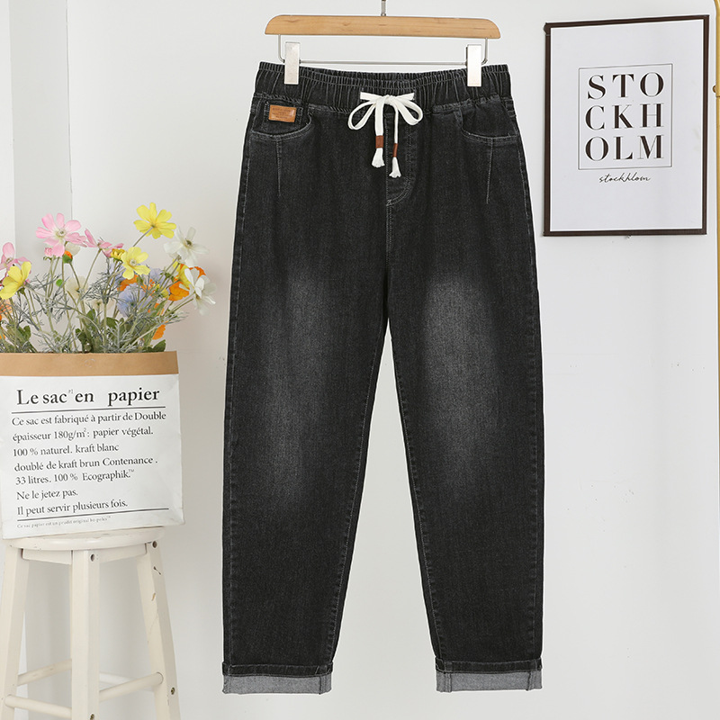 2023 청송 꽉 허리 청바지 통통녀 플러스 사이즈 하이 웨이스트 스키니 하렘 바지 여성 토레 바지 약간 탄성스토어 가기
