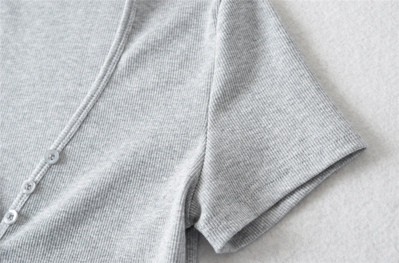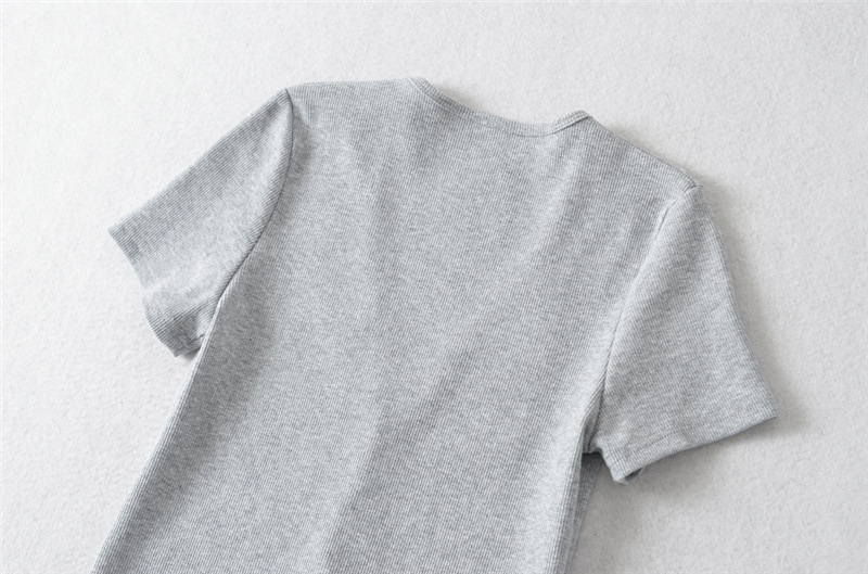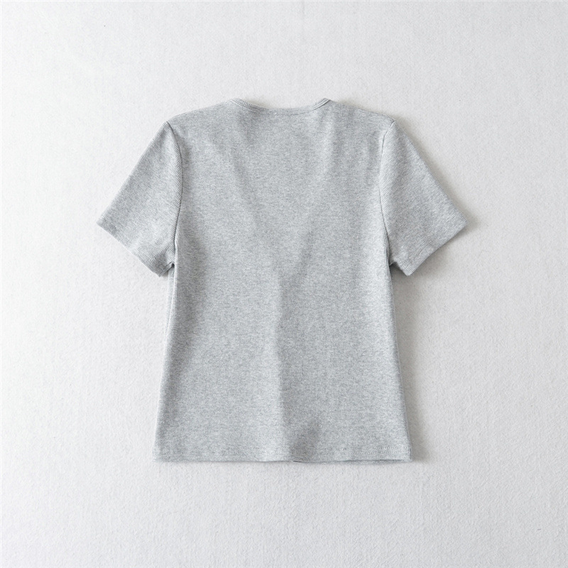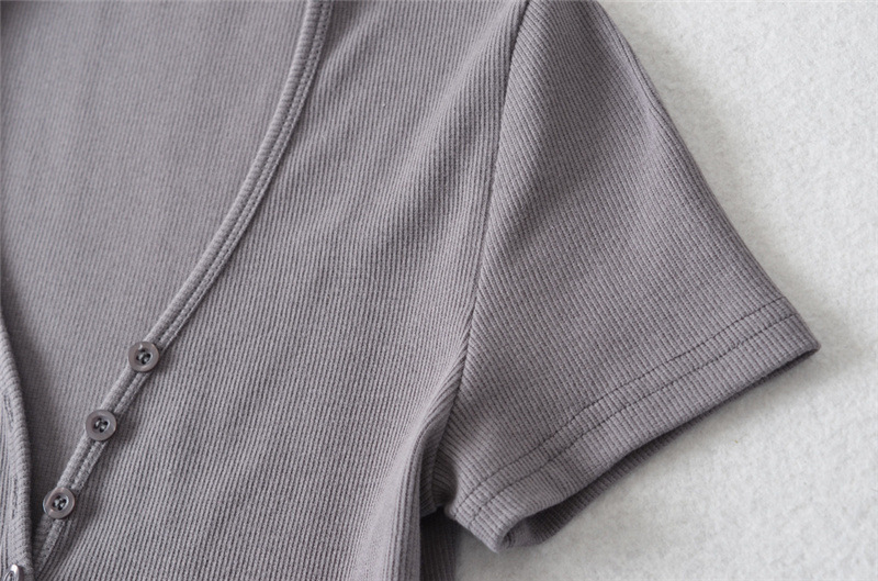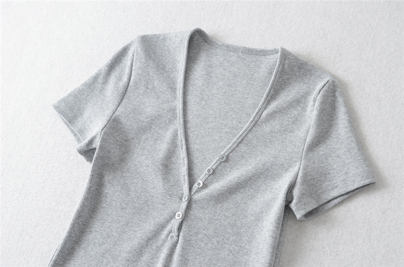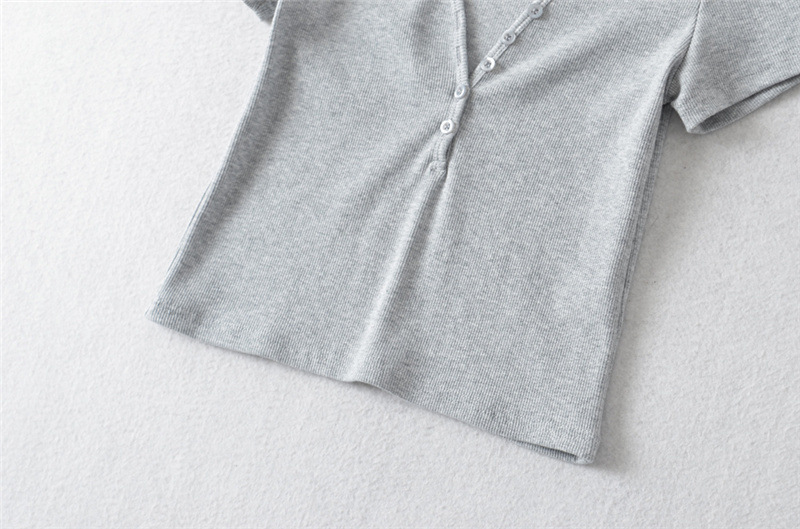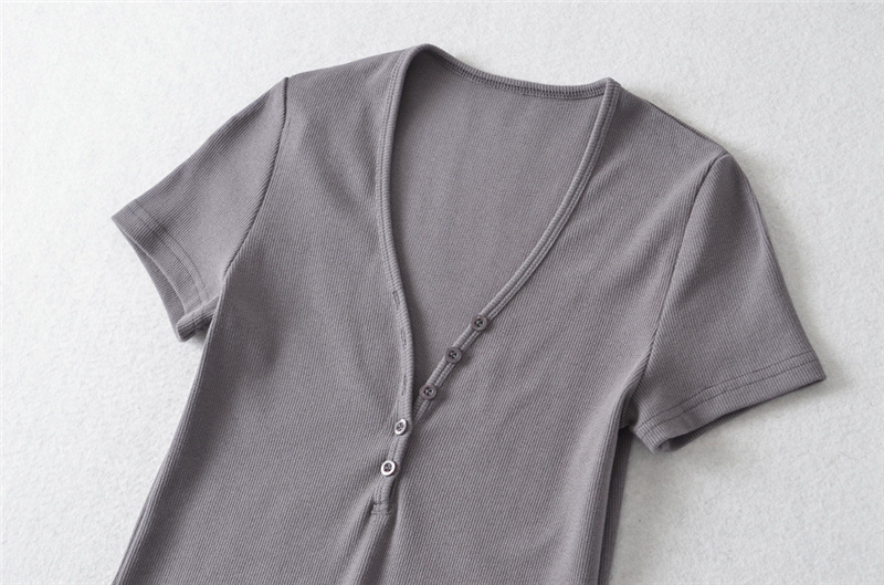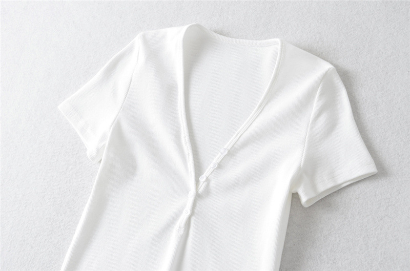 유럽과 미국 스타일 V-넥 버튼 스파이스 걸스베이스 티셔츠 여름 새로운 스타일 웨스턴 스타일 모든 매치 슬림 핏 슬리밍 짧은 크롭 탑