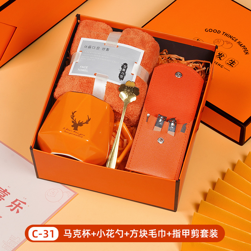 • 머그 + 작은 꽃 스푼 + 수건 + 손톱 가위 세트