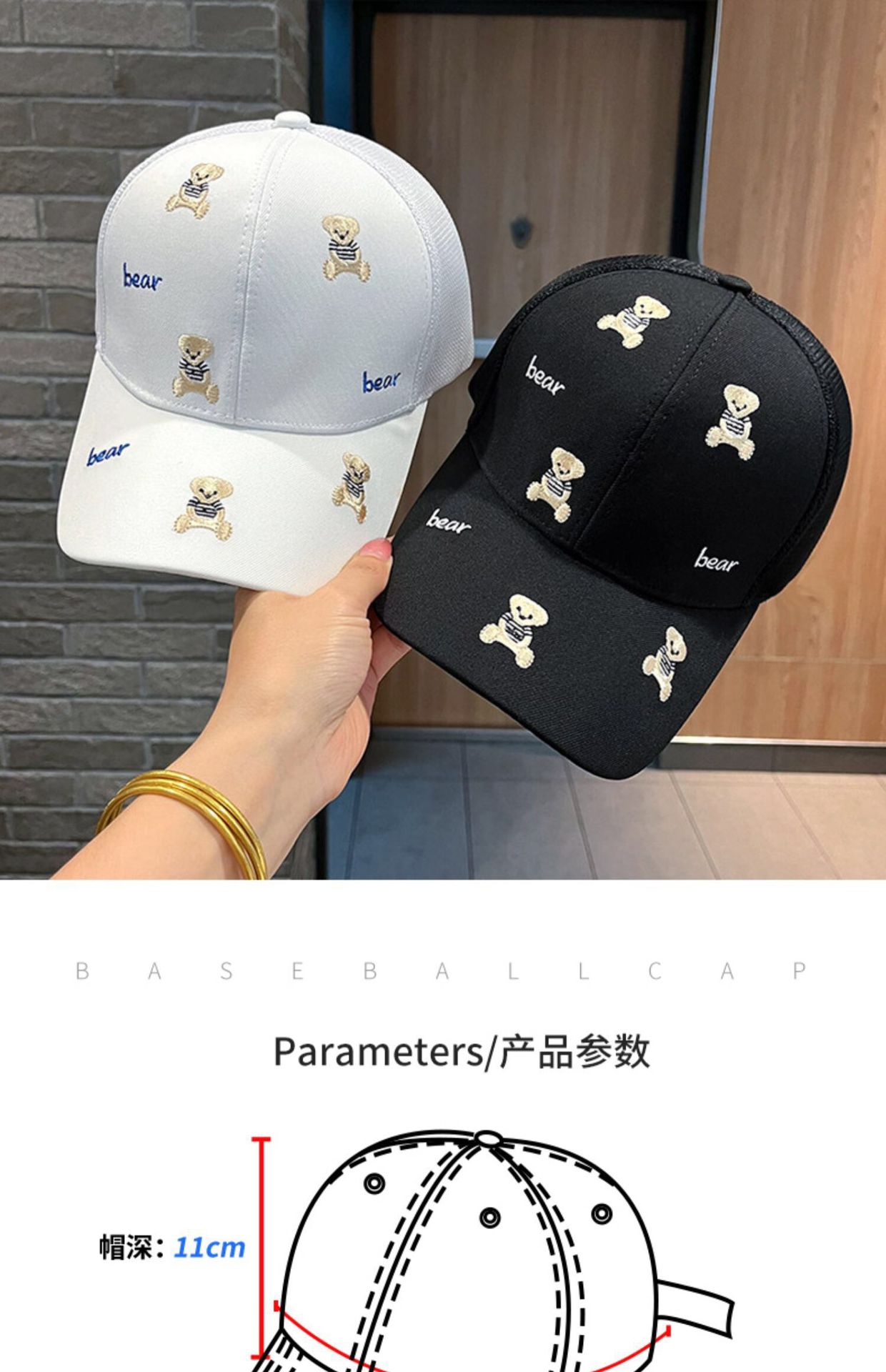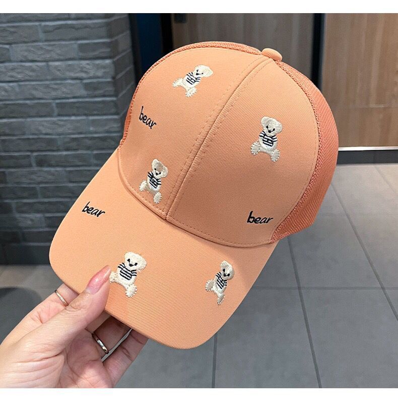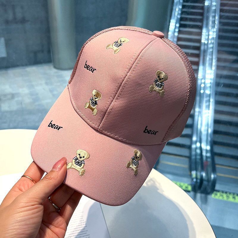 일본식 만화 자수 곰 모자 어린이 봄과 여름 여행 차양 통기성 곡선 이브 그물 모자 야구 모자 조수