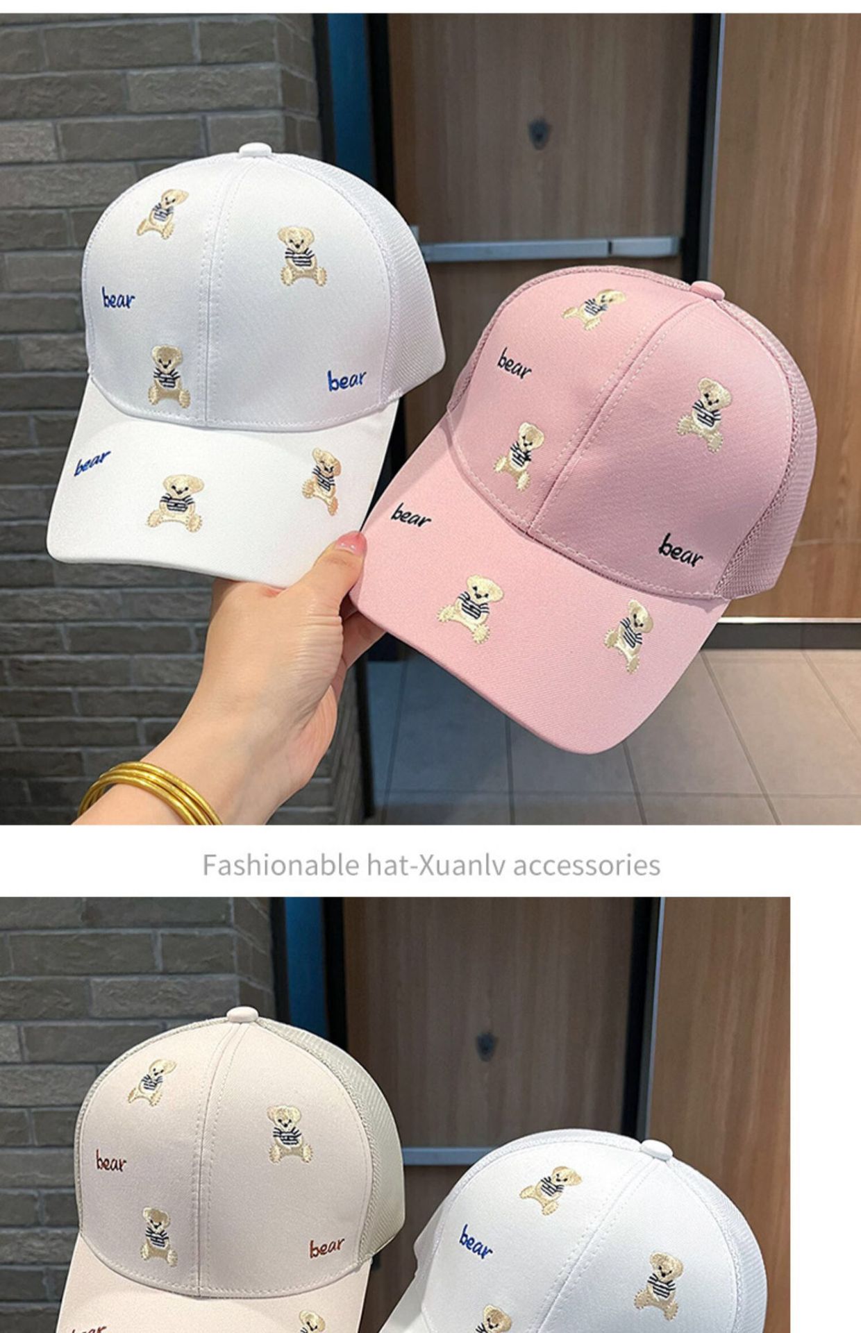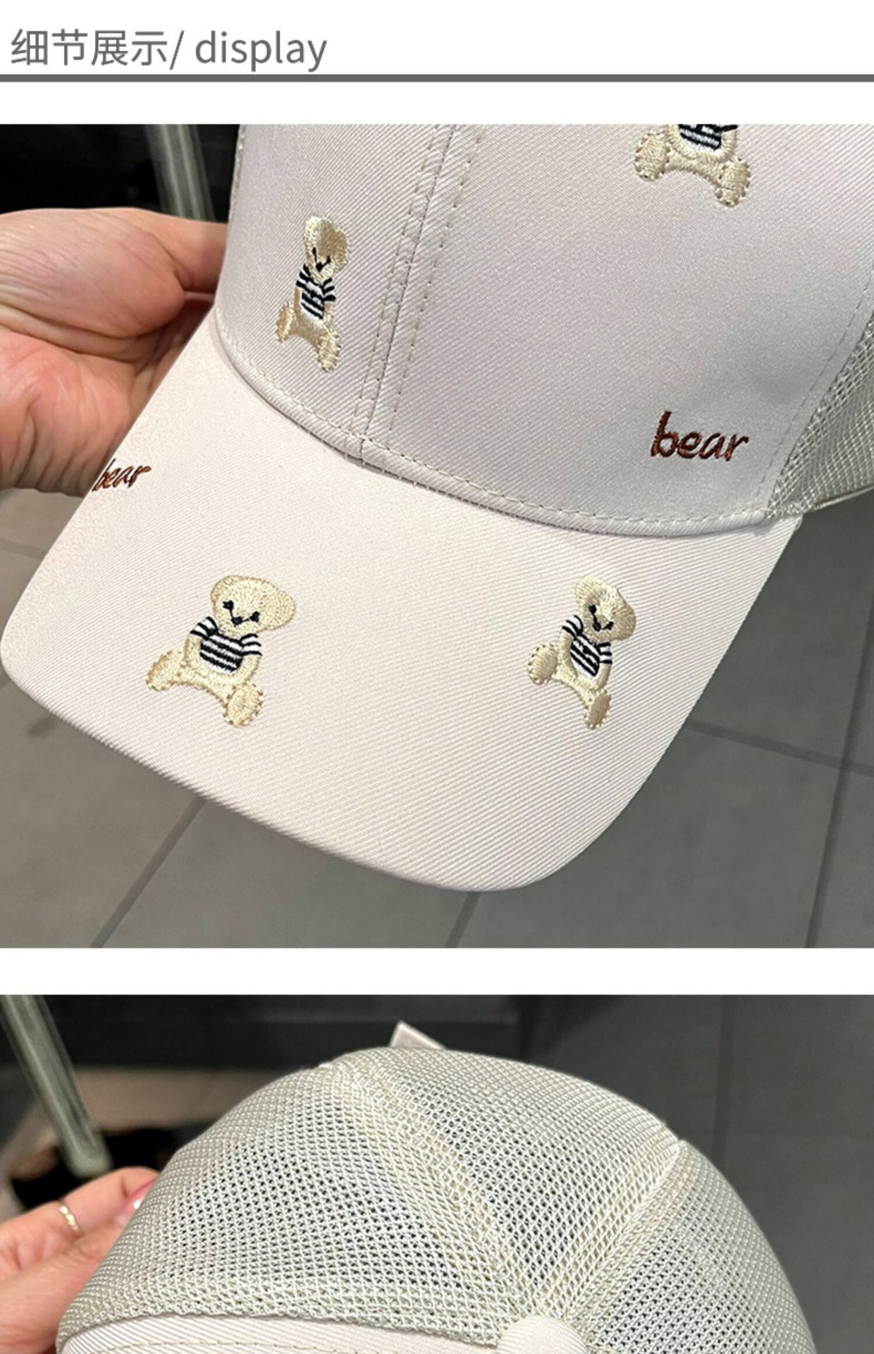 일본식 만화 자수 곰 모자 어린이 봄과 여름 여행 차양 통기성 곡선 이브 그물 모자 야구 모자 조수스토어 가기