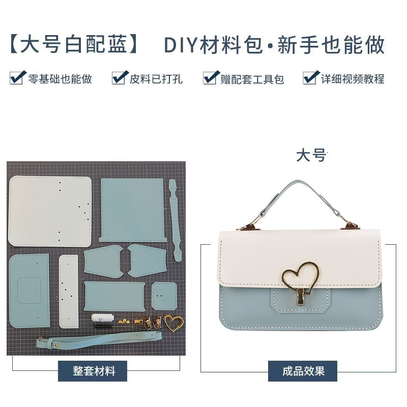 DIY 수제 가방 핸드 스티치 소재 가방 여자 친구의 생일을위한 자체 제작 선물 Tanabata 발렌타인 데이 크로스 바디 백 스퀘어 백스토어 가기