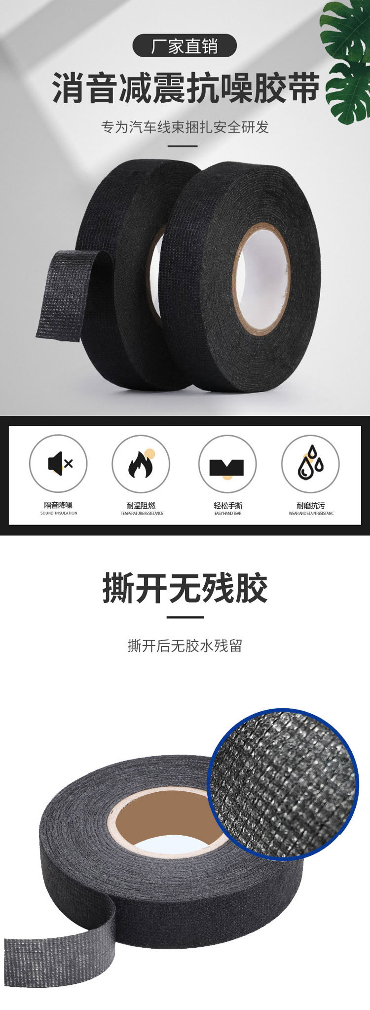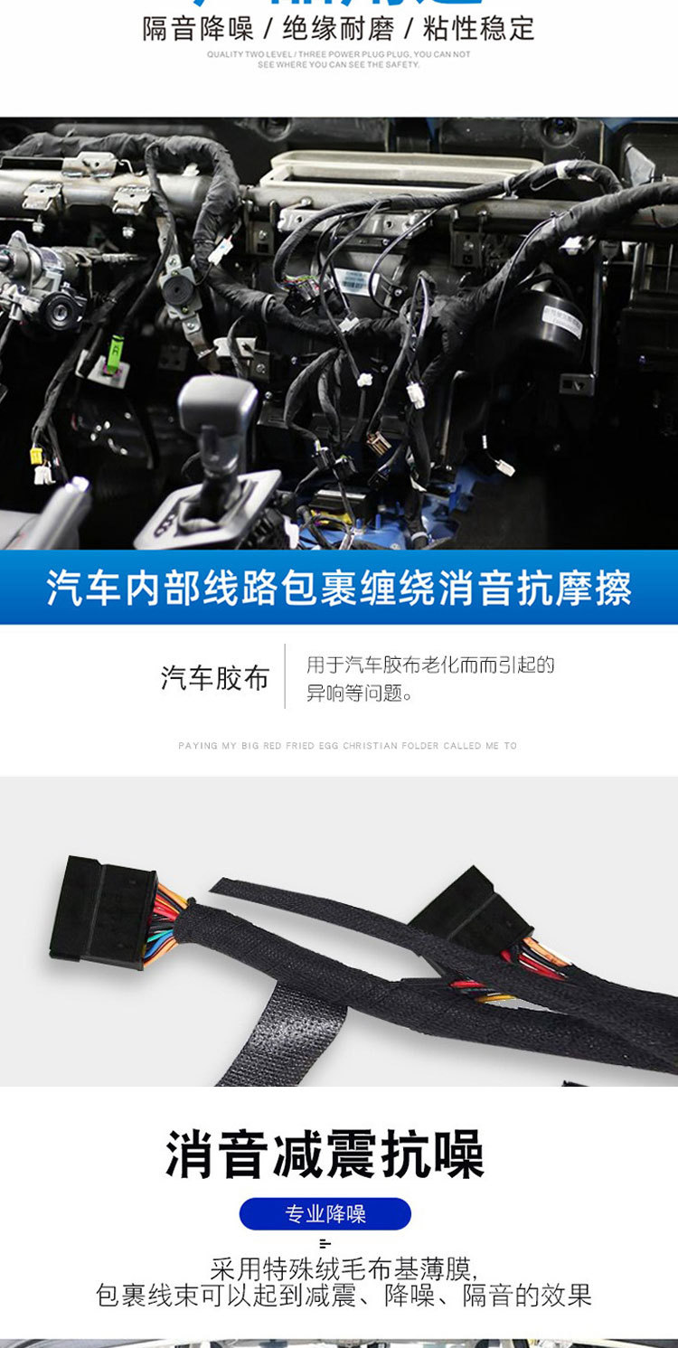 PET 벨벳 와이어 하네스 테이프 자동차 난연성, 적합하고 고온 105도 저항성, 소음 감소, 방음, 충격 방지 및 찢기 쉽습니다.스토어 가기
