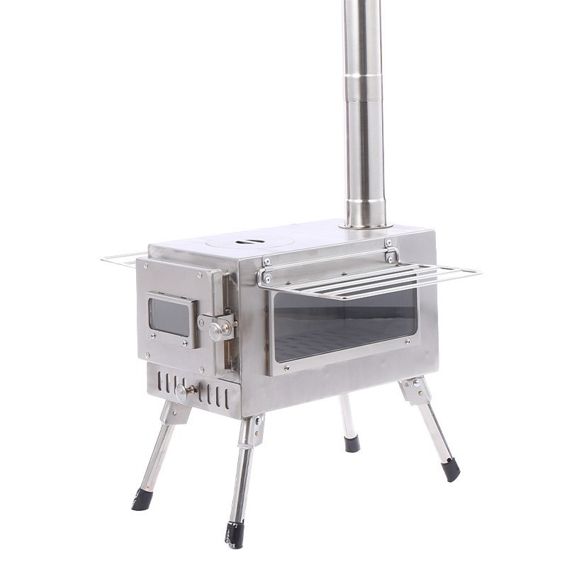 장작 난로 야외 캠핑 난방 장작 난로 피크닉 조명 텐트 화재 창 스테인레스 스틸 스토브 접이식 카세트 스토브