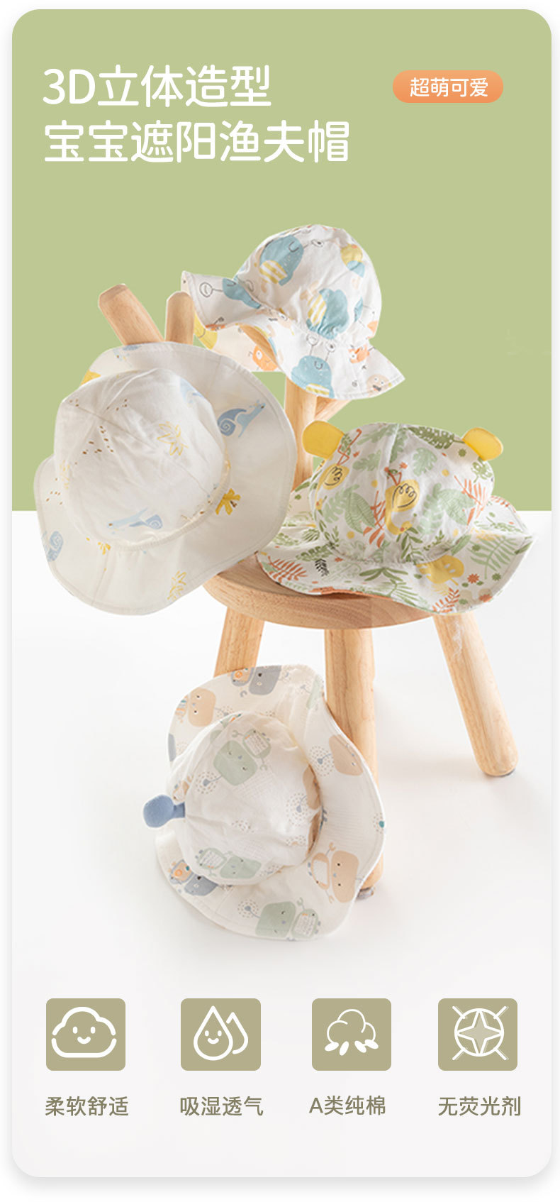 아기 모자 봄과 가을 얇은 신생아 어린이 봄과 여름 어부 모자 아기의 여름 차양 태양 모자 순면스토어 가기