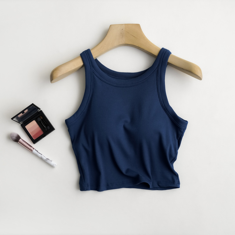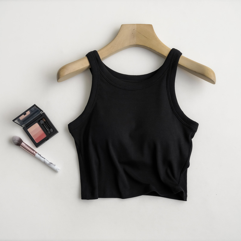 가슴 패드가있는 실 내부 짧은 배꼽 전시 작은 슬링 요가 스포츠 조끼 베이스웨어 내부 민소매 탑웨어 겉옷스토어 가기
