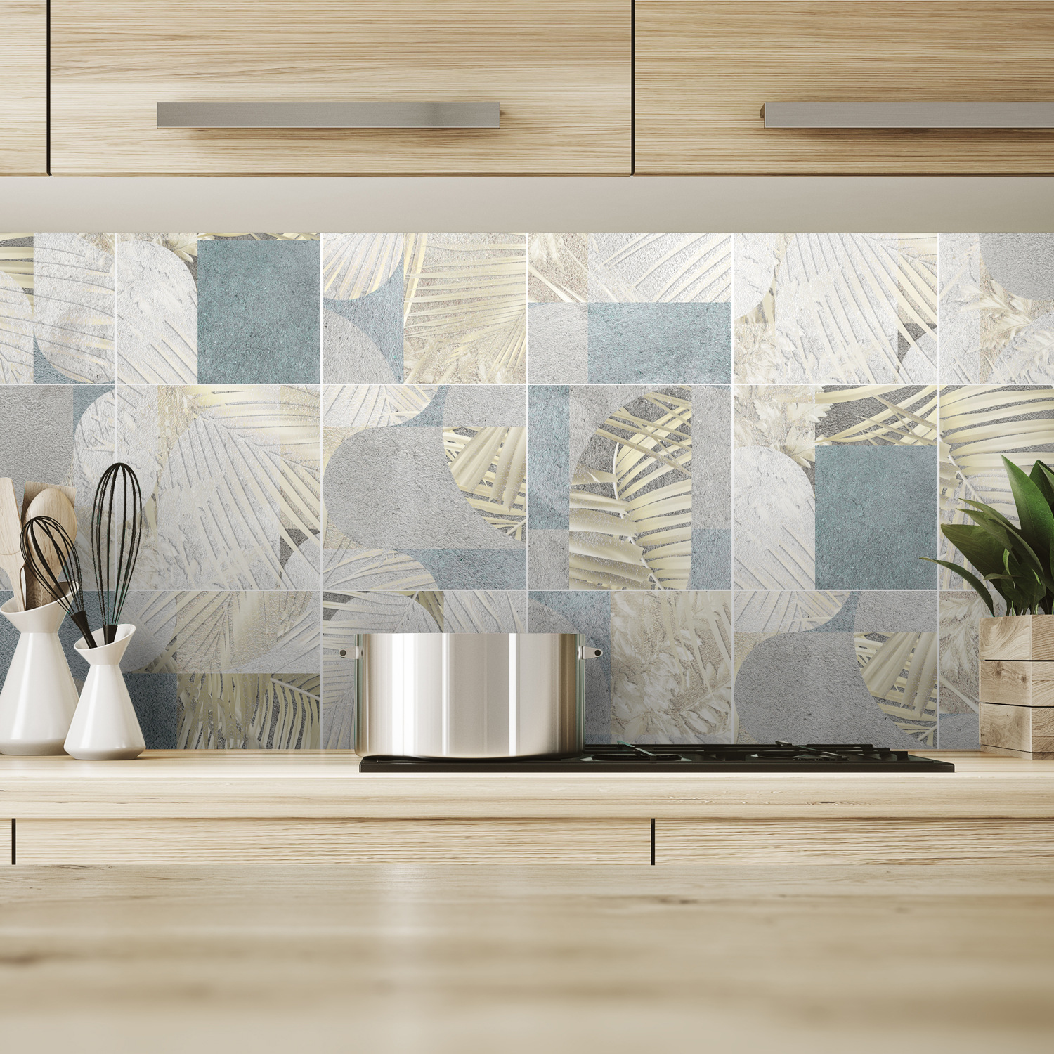 Funlife 빈티지 잎 패턴 대리석 질감 두꺼운 타일 스티커 세면대 수조 방수 KTS024