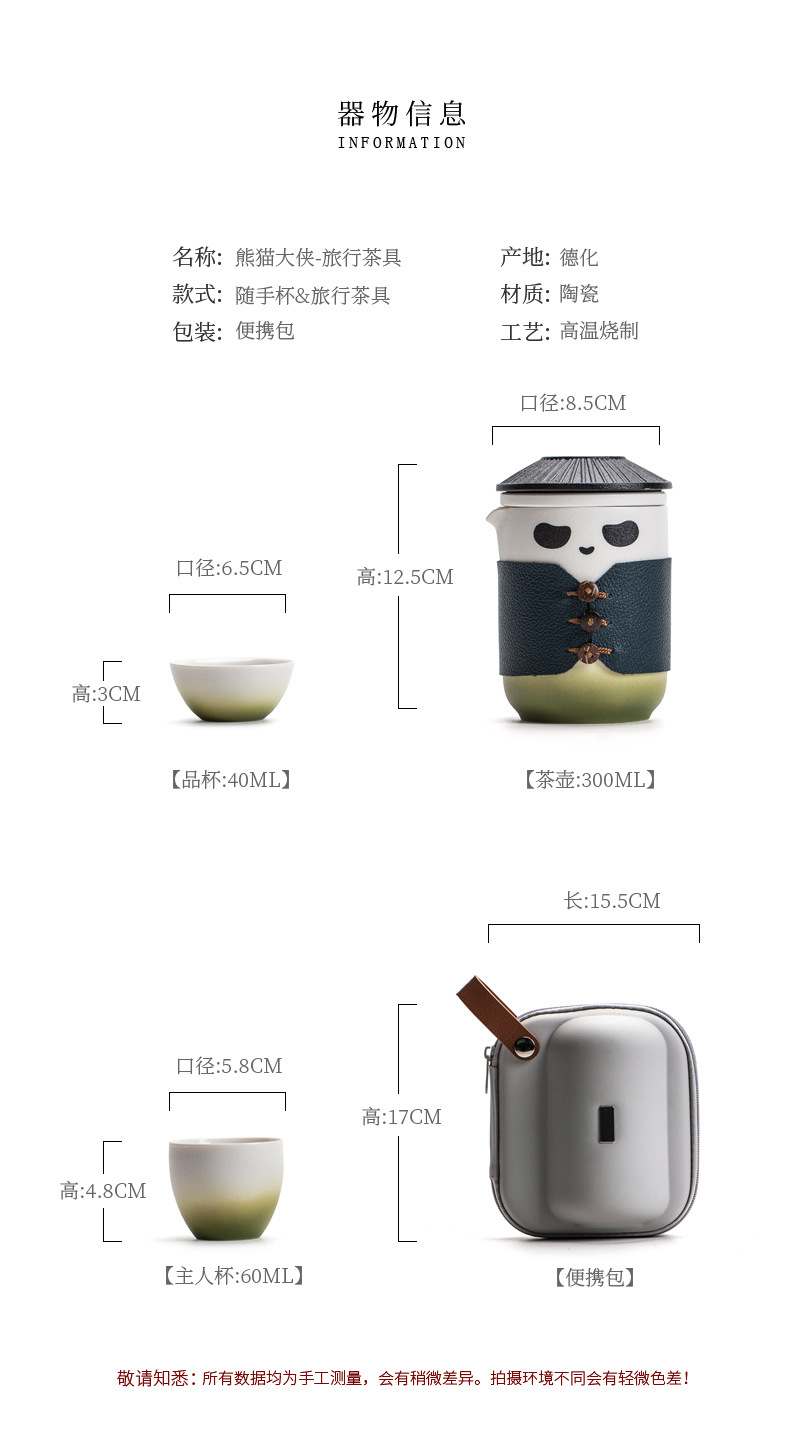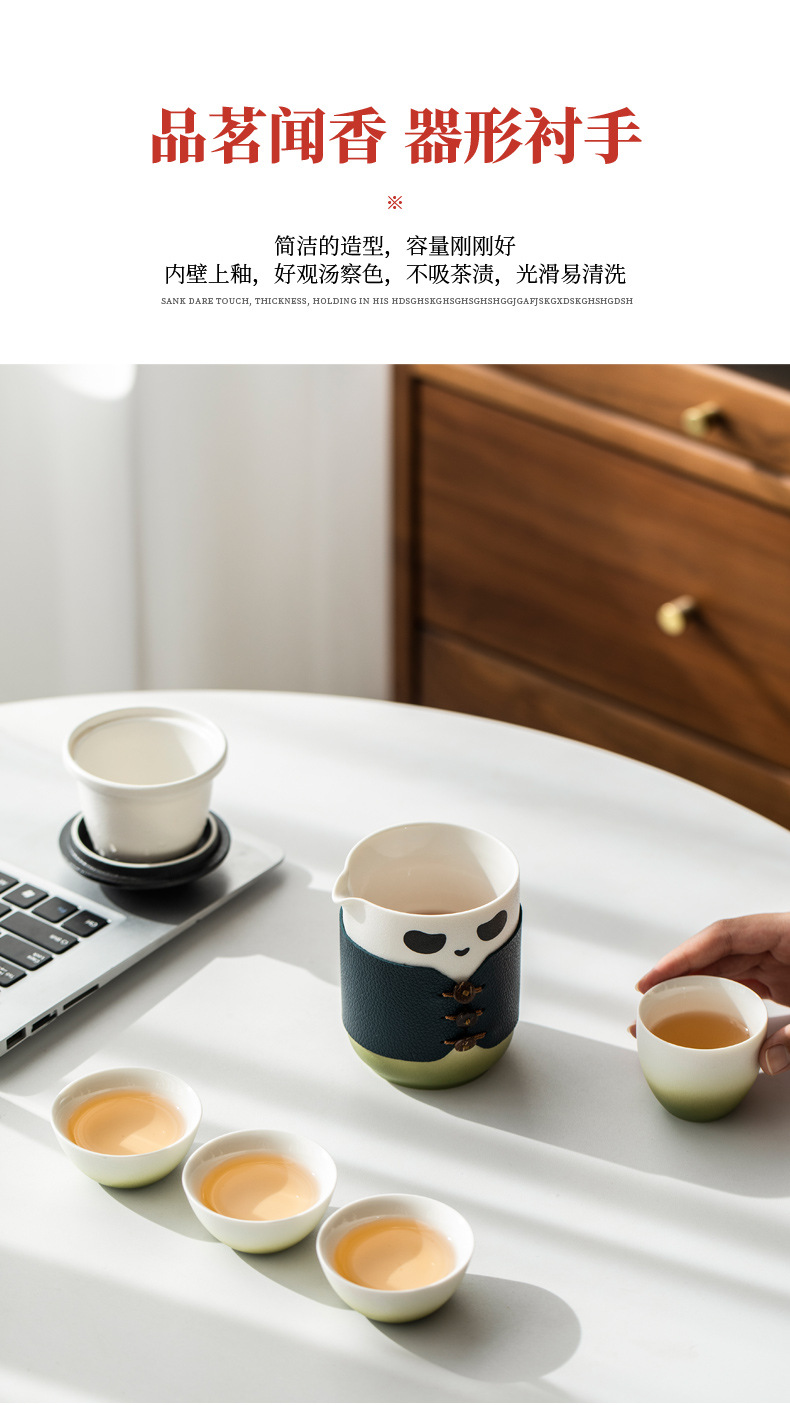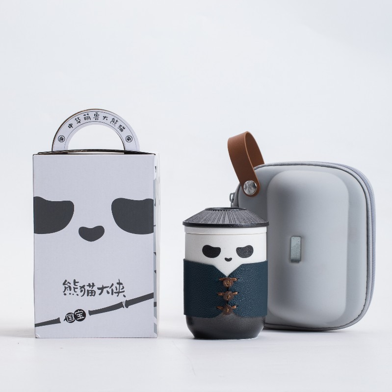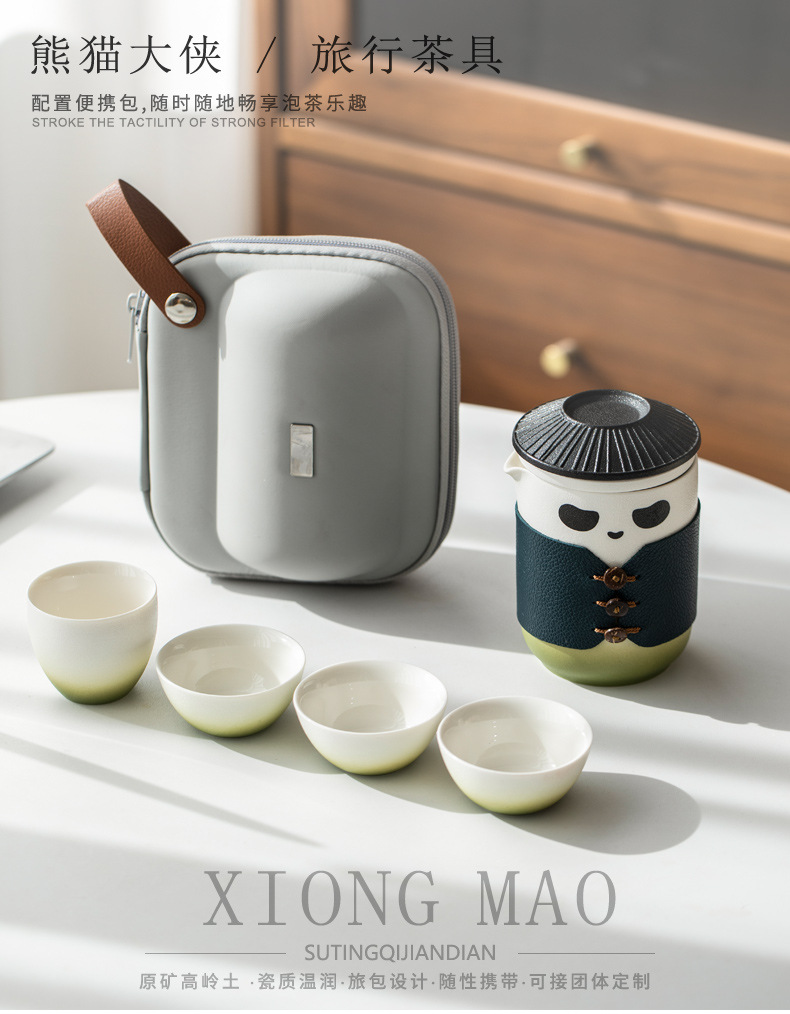 팬더 익스프레스 컵 여행 차 세트 휴대용 보관 가방 한 냄비 4 컵 야외 찻잔 동반 선물스토어 가기