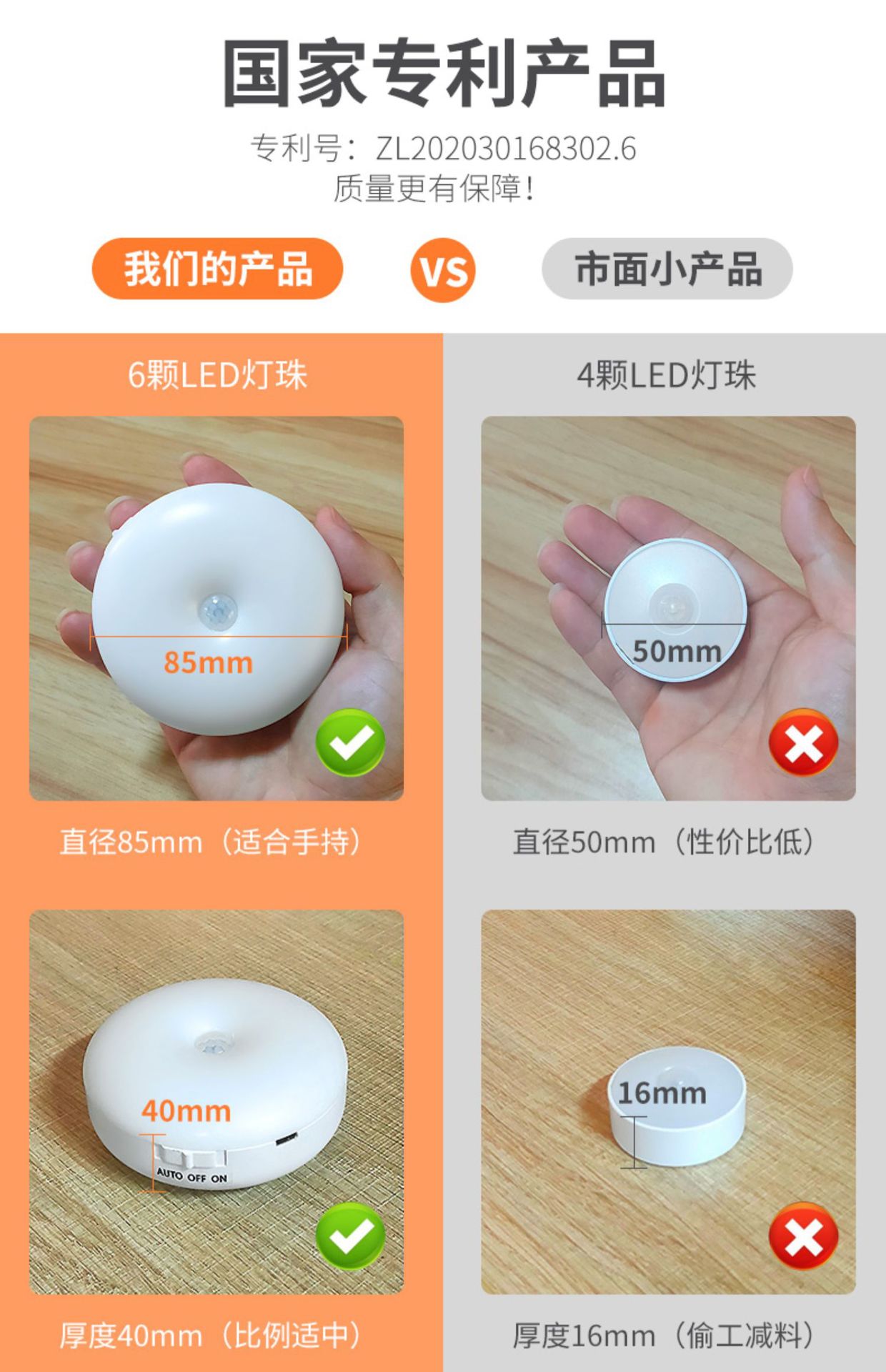 지능형 인체 유도 야간 조명 LED 음성 제어등 제어 충전식 배터리형 가정용 복도 복도 무선스토어 가기