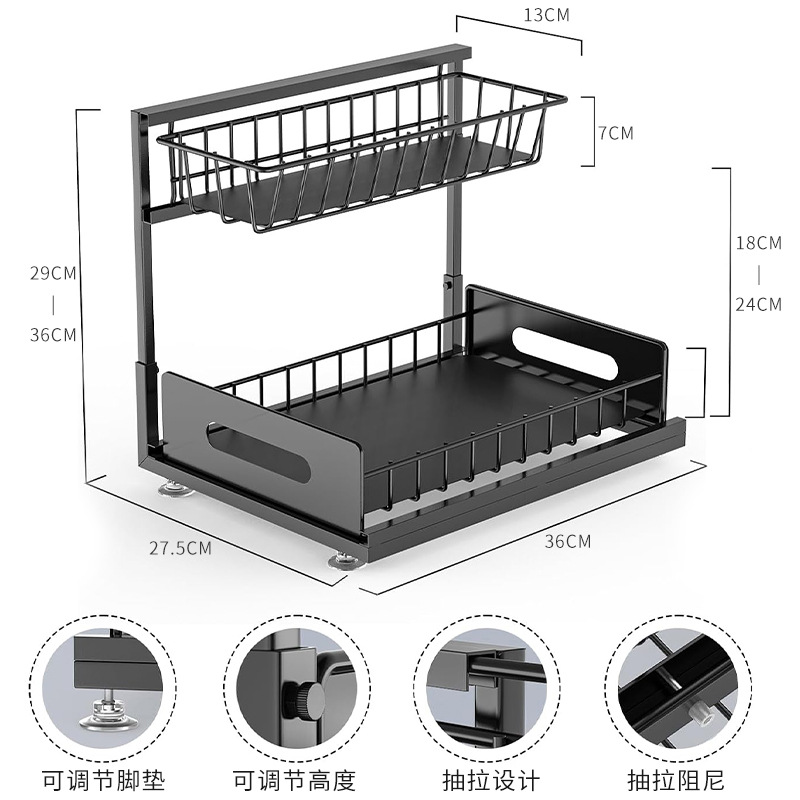 주방 양념 캐비닛 스토리지 랙 낮은 싱크 스토리지 랙 더블 레이어 드로잉 주방 마감 싱크 랙
