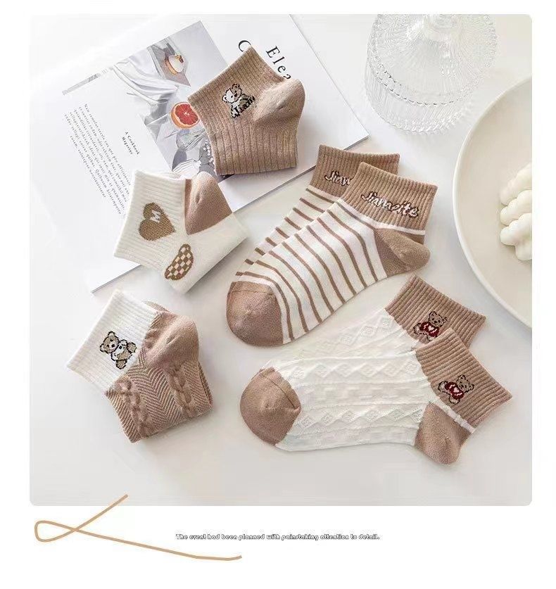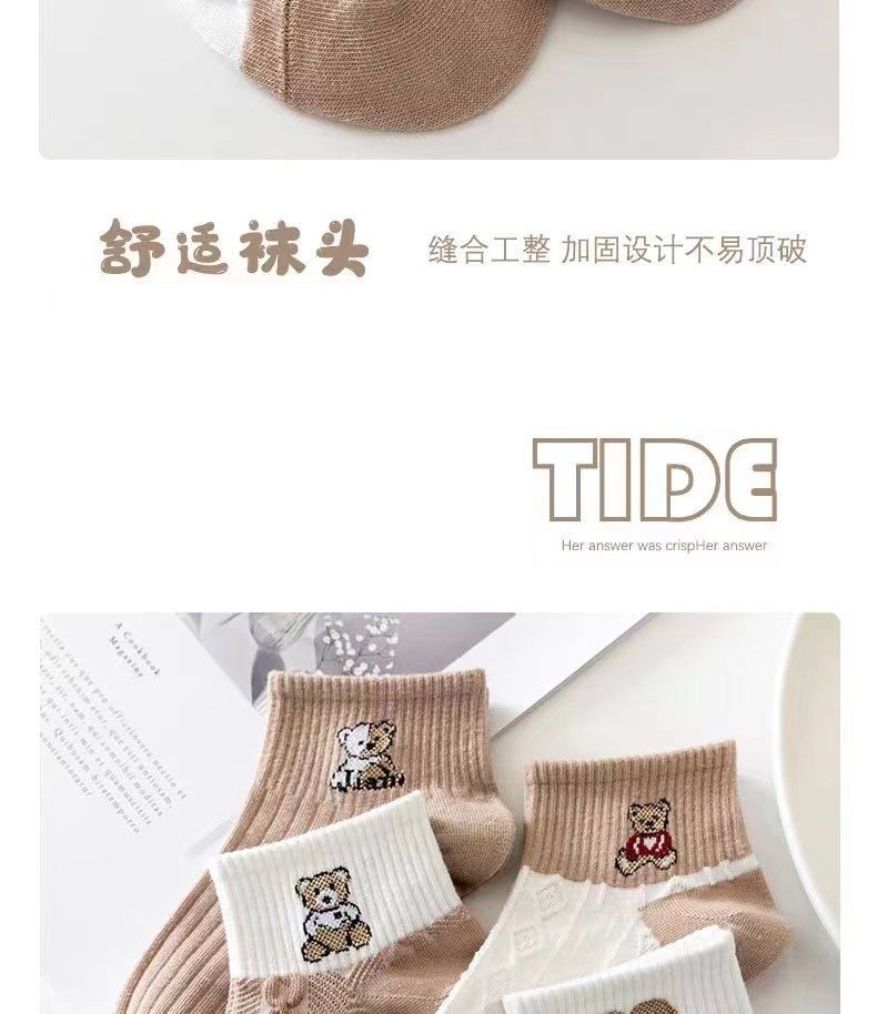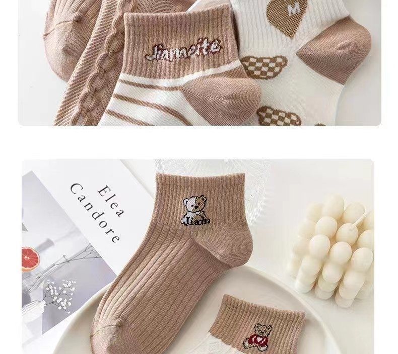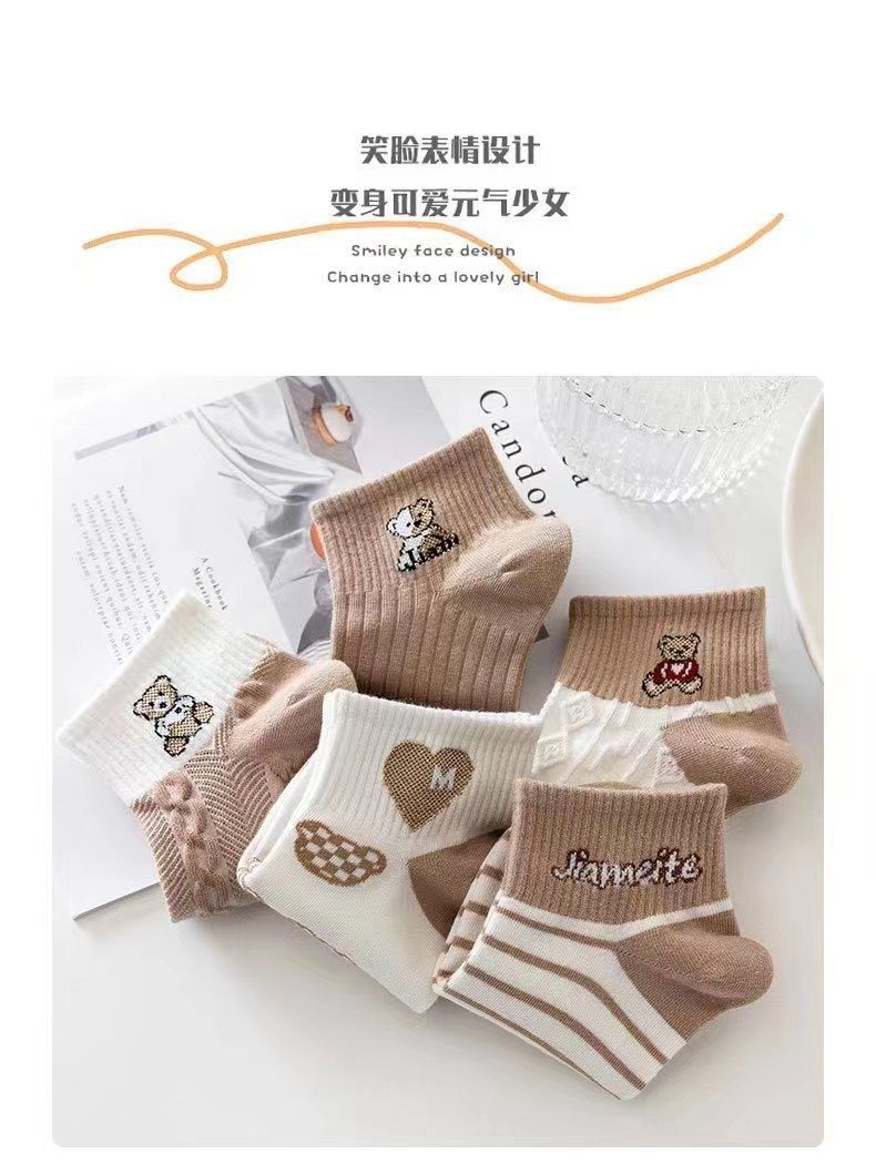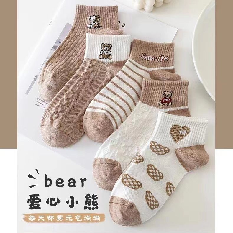 짧은 양말 일본식 캐리 모리 여자 모리 스타일의 신선한 가을 모든 경기 자카드 아트 한국식 가을 대학 다크 브라운 곰