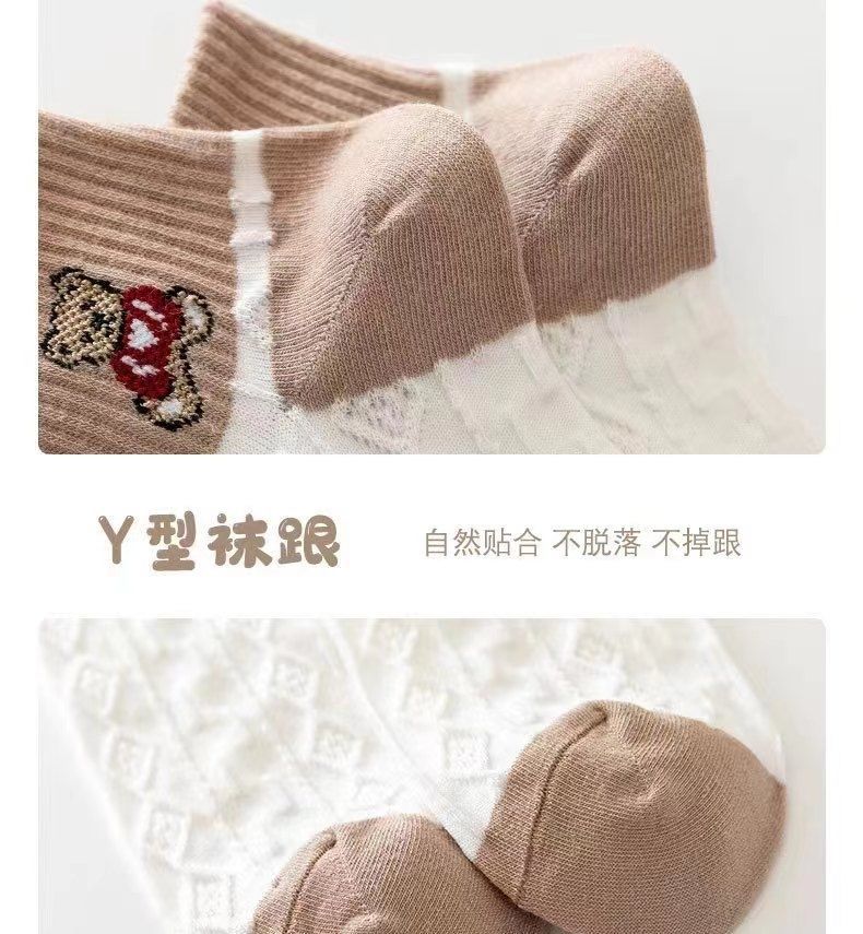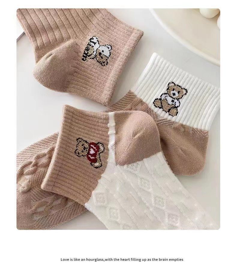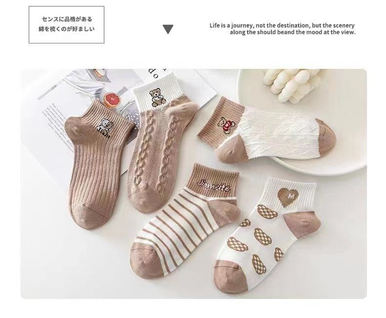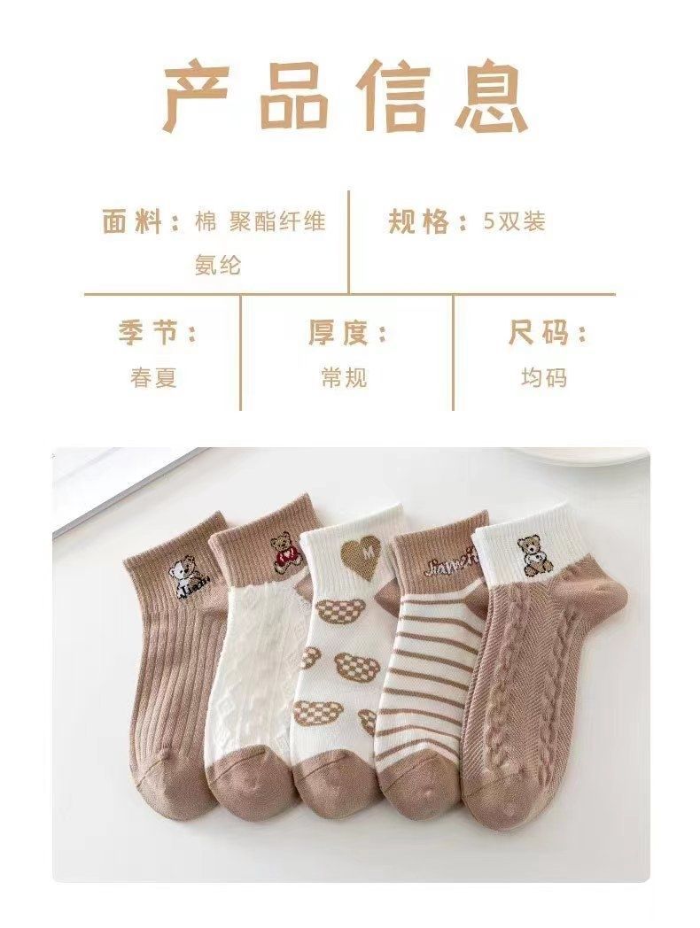 짧은 양말 일본식 캐리 모리 여자 모리 스타일의 신선한 가을 모든 경기 자카드 아트 한국식 가을 대학 다크 브라운 곰