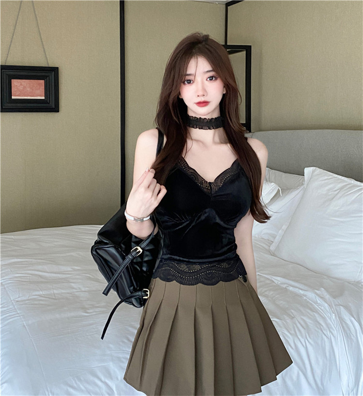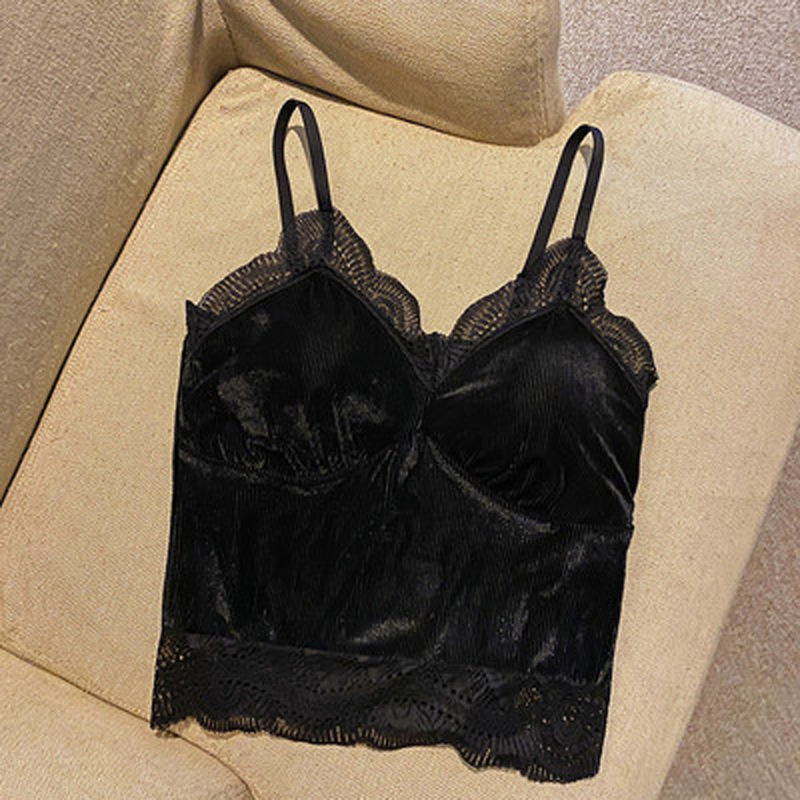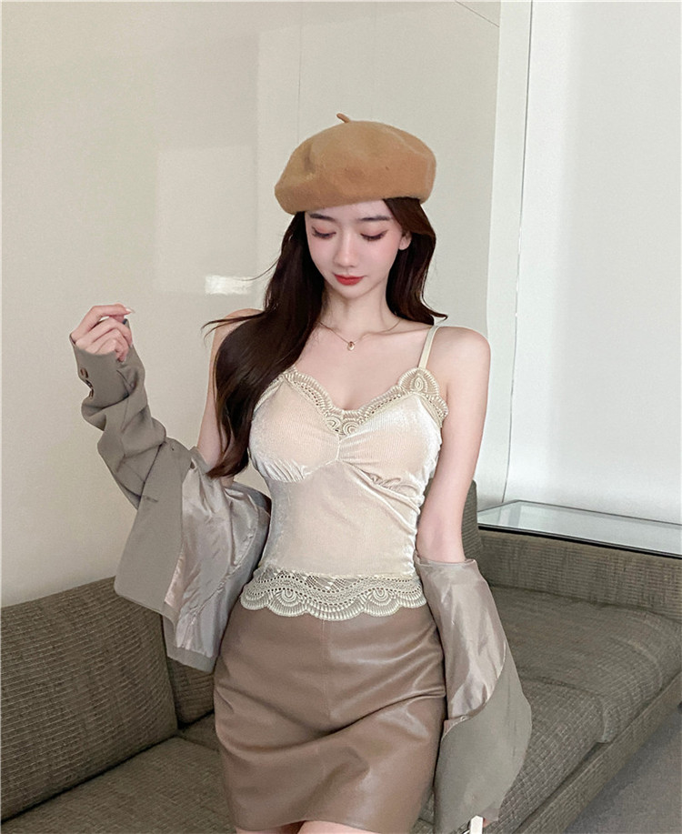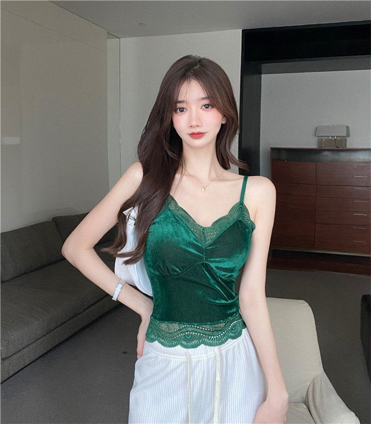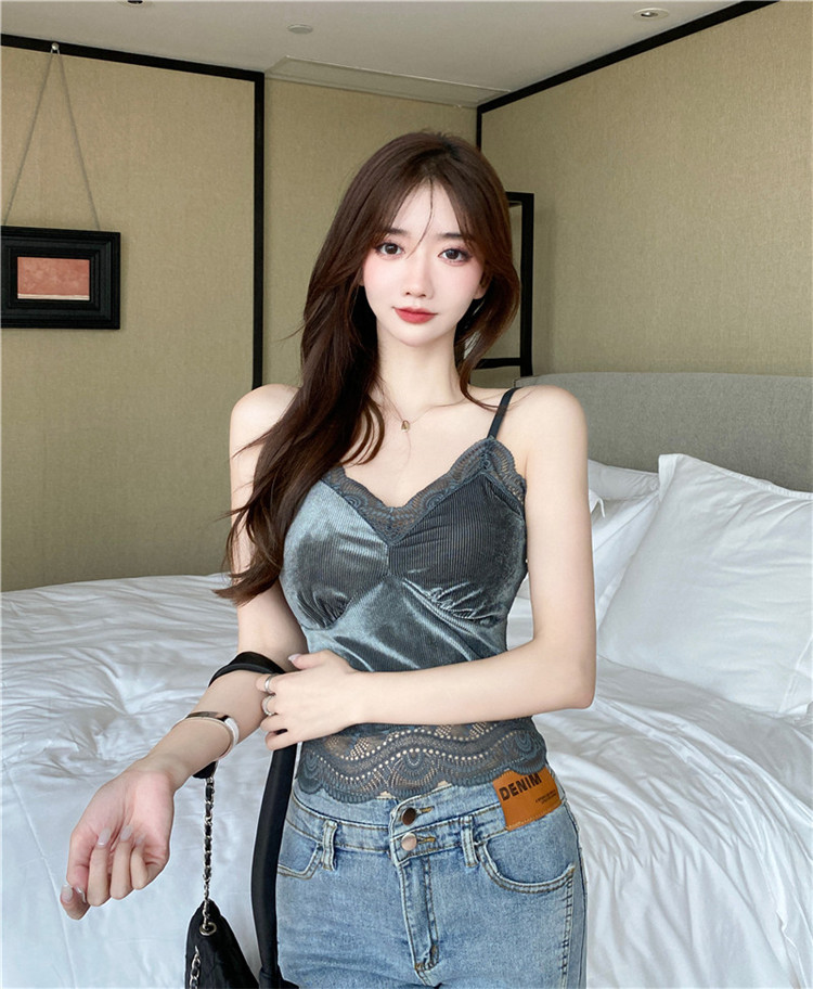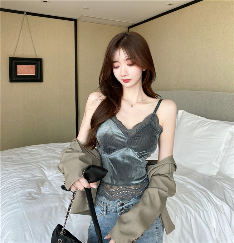골든 벨벳 작은 캐미솔 여성의 가을과 겨울 아우터 아름 다운 백 세트 내부 베이스 달콤하고 뜨거운 프랑스 시크 탑스토어 가기