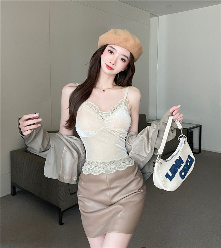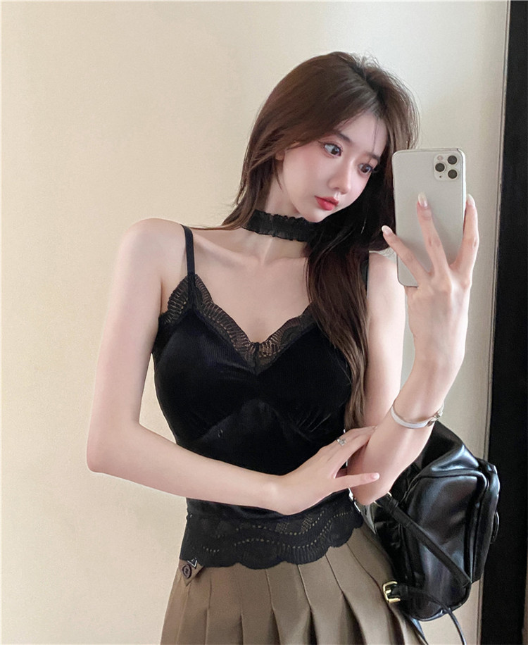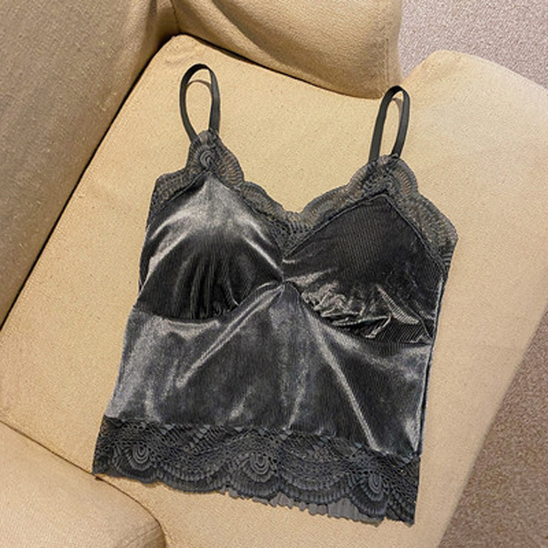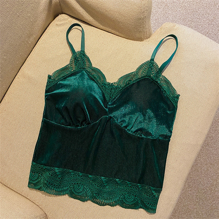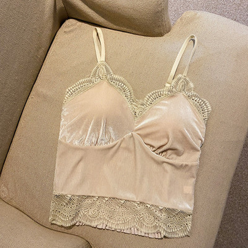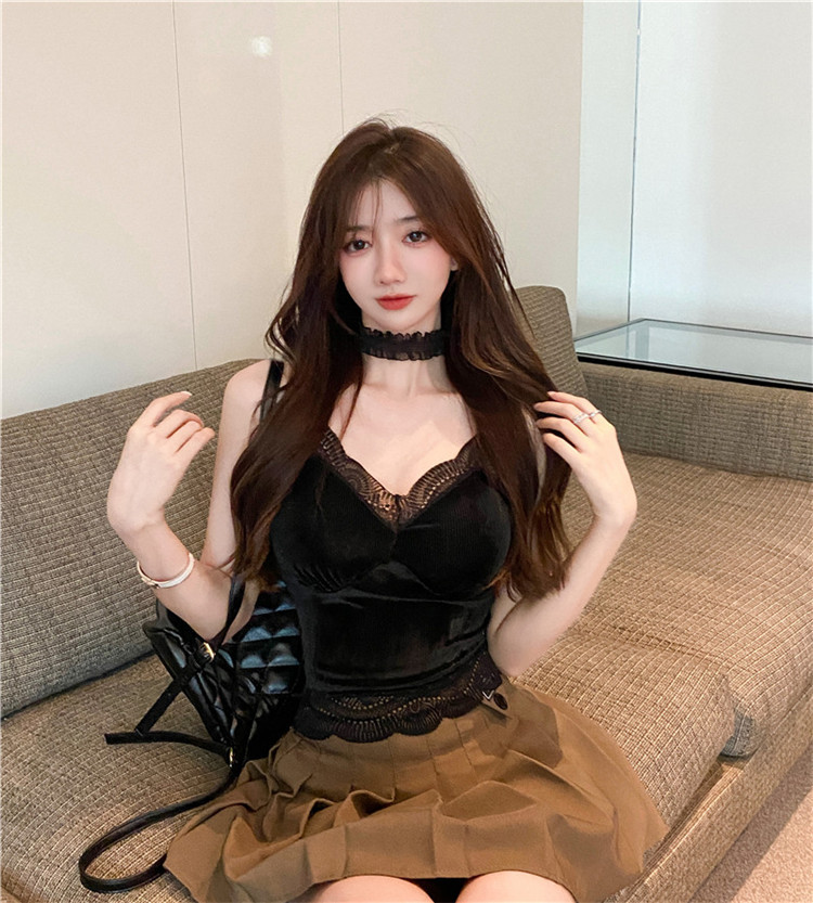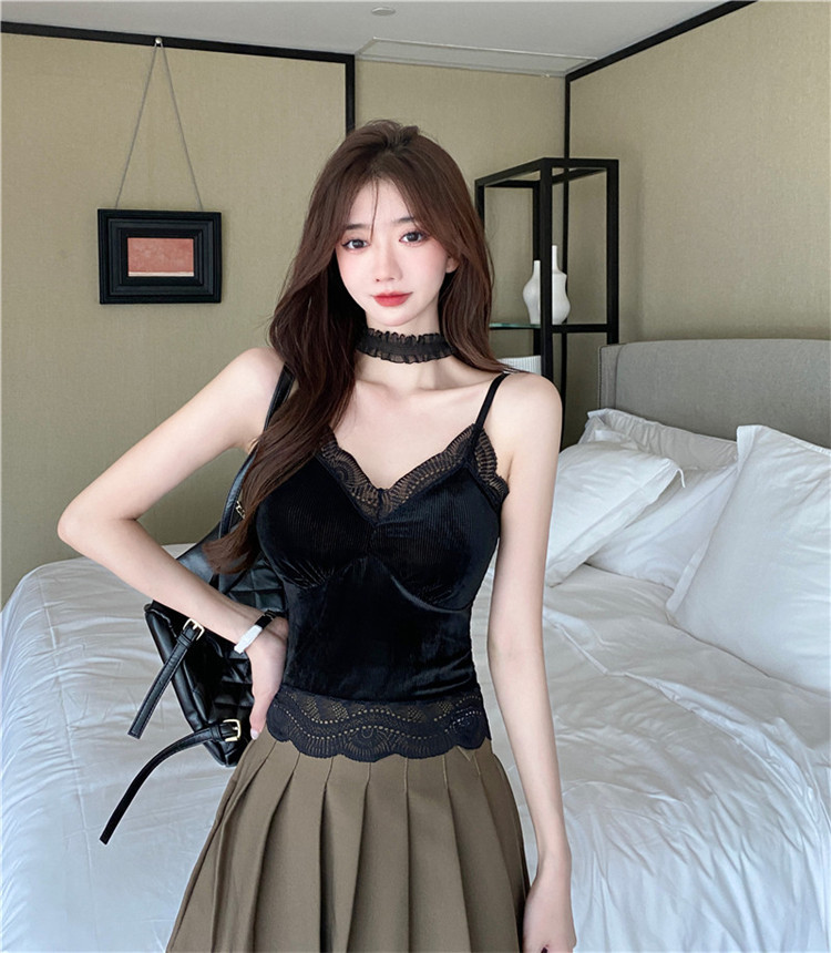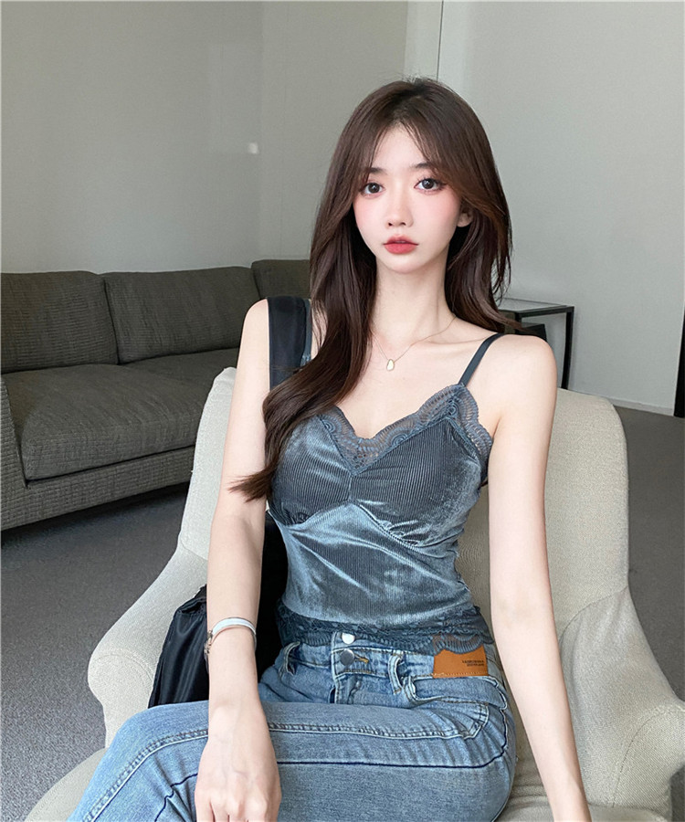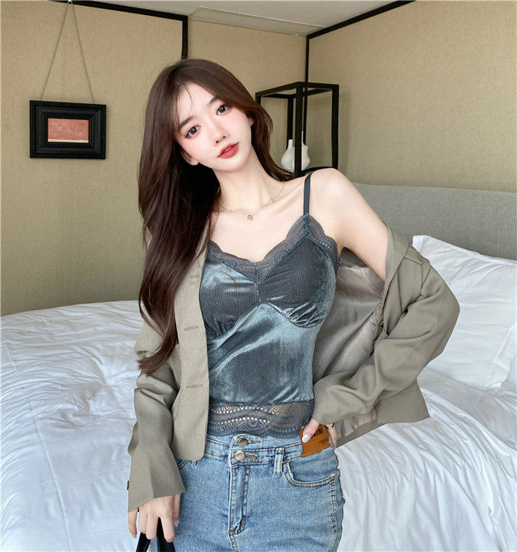 골든 벨벳 작은 캐미솔 여성의 가을과 겨울 아우터 아름 다운 백 세트 내부 베이스 달콤하고 뜨거운 프랑스 시크 탑