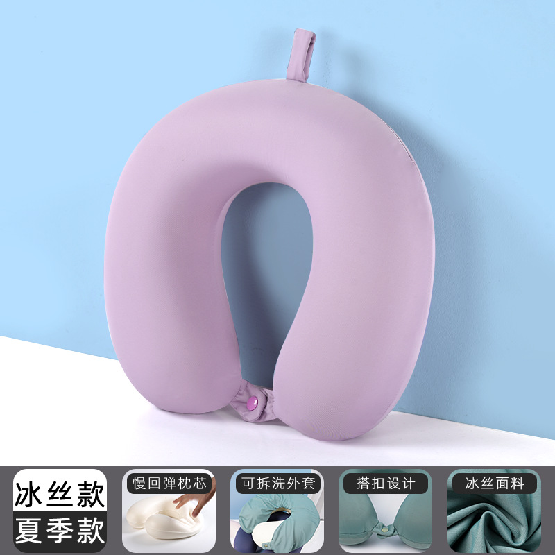 시원하고 시원한 U 자형 베개 메모리 폼 젤 목 보호 U 자형 낮잠 베개 여름 비행 베개 쿨 아이스 실크 통기성