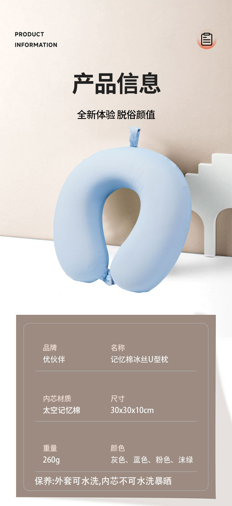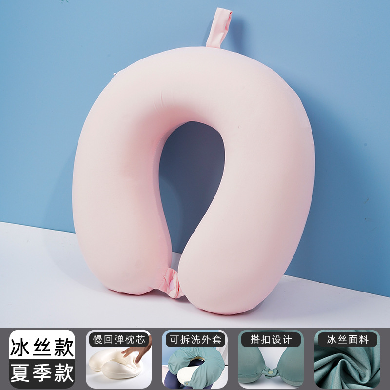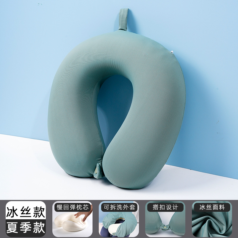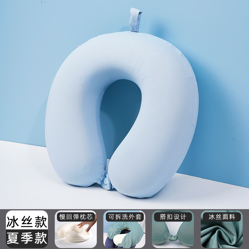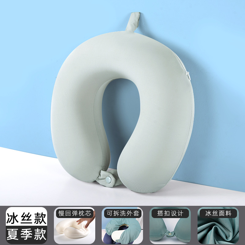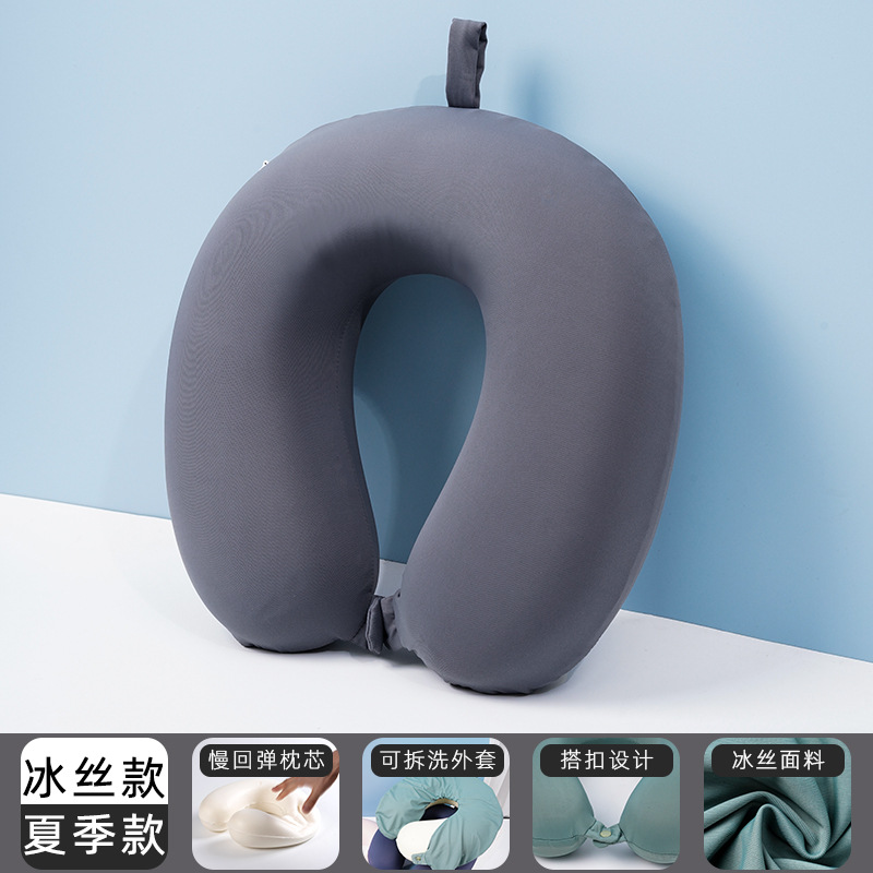 시원하고 시원한 U 자형 베개 메모리 폼 젤 목 보호 U 자형 낮잠 베개 여름 비행 베개 쿨 아이스 실크 통기성스토어 가기