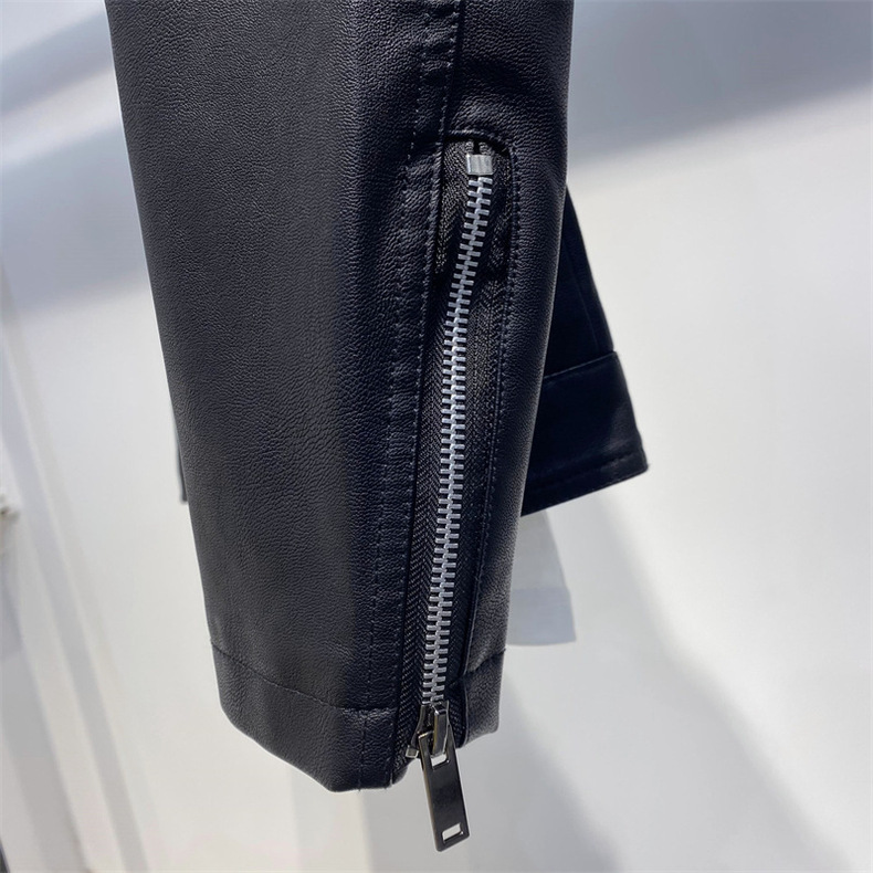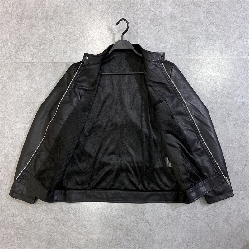 • 블랙 스탠드 칼라 기관차 PU 가죽 GTPU603 기모