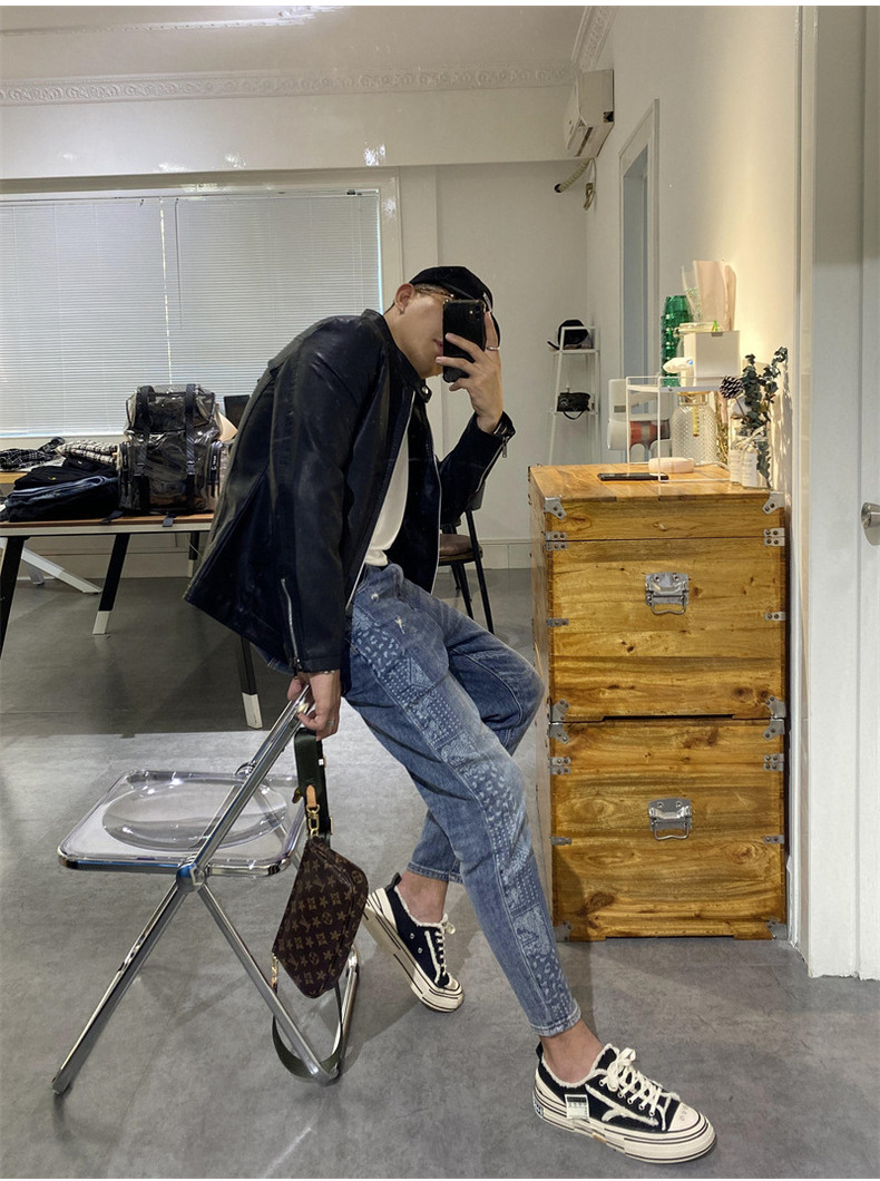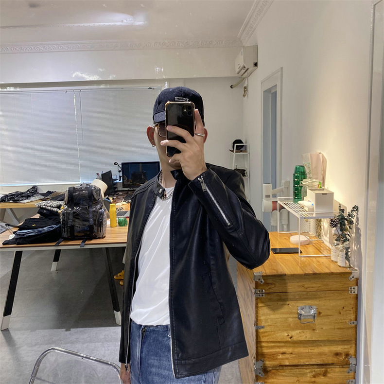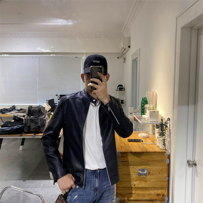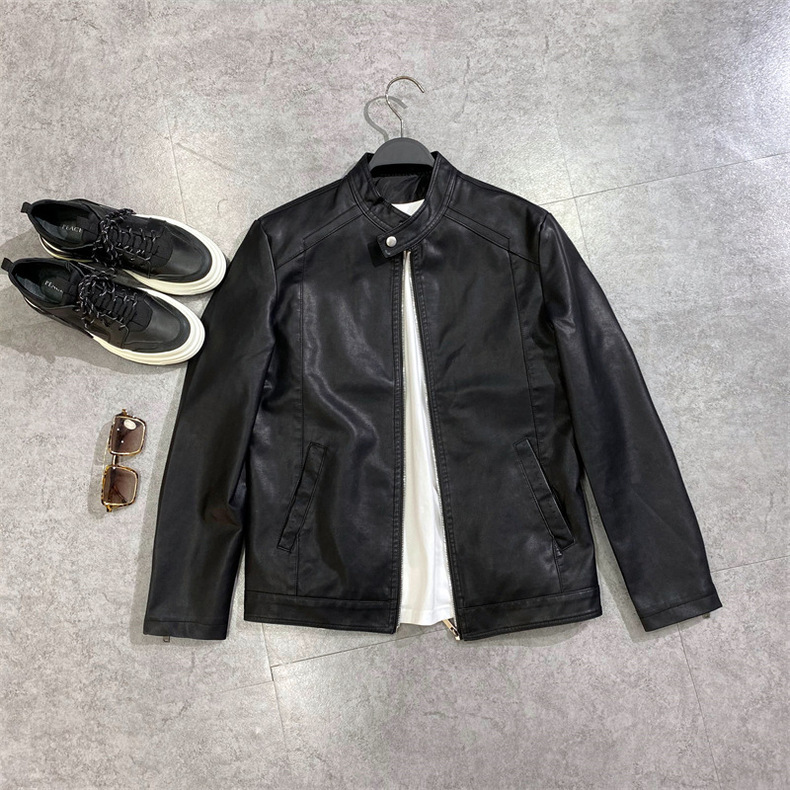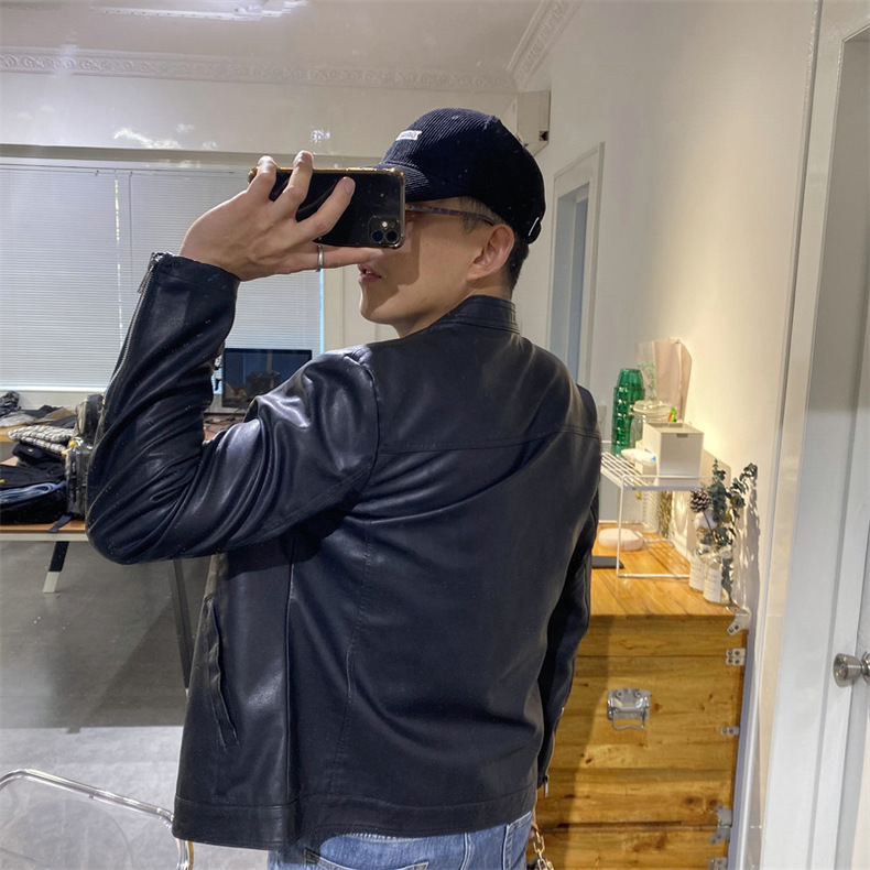 새로운 봄과 가을 남성 스탠드 칼라 가죽 의류 패션 슬림 비즈니스 가죽 자켓 남성용 PU 오토바이 가죽 의류 GTPU603스토어 가기