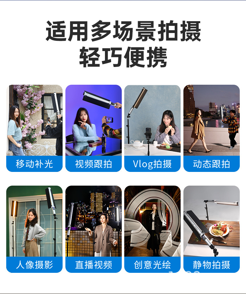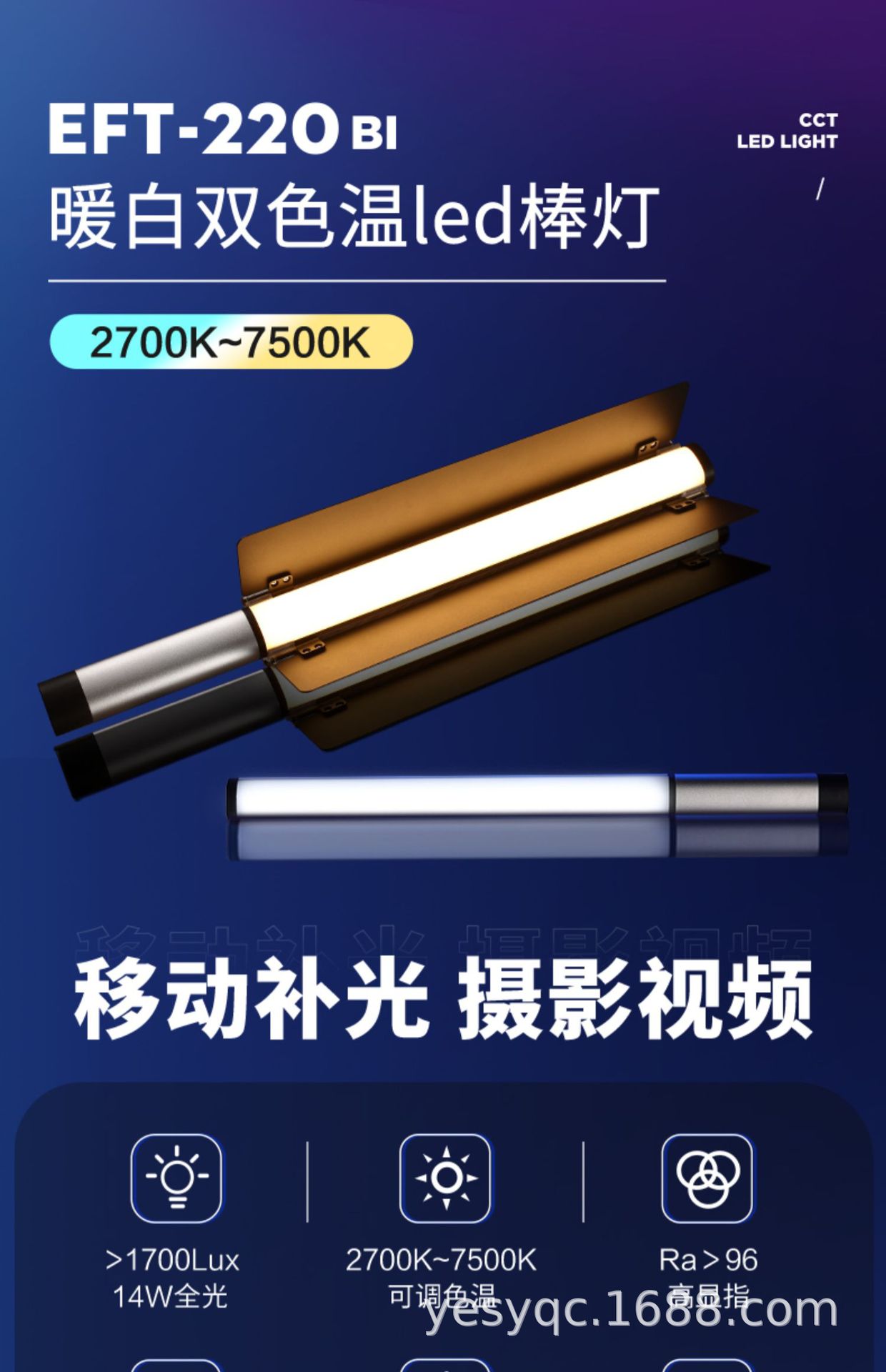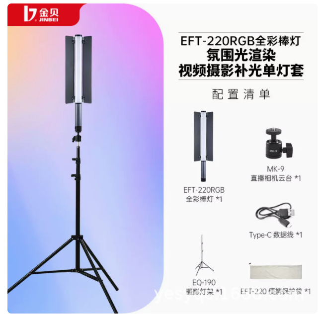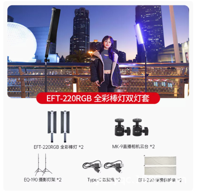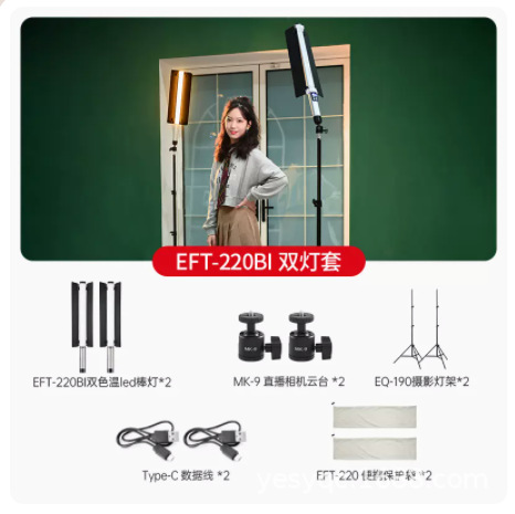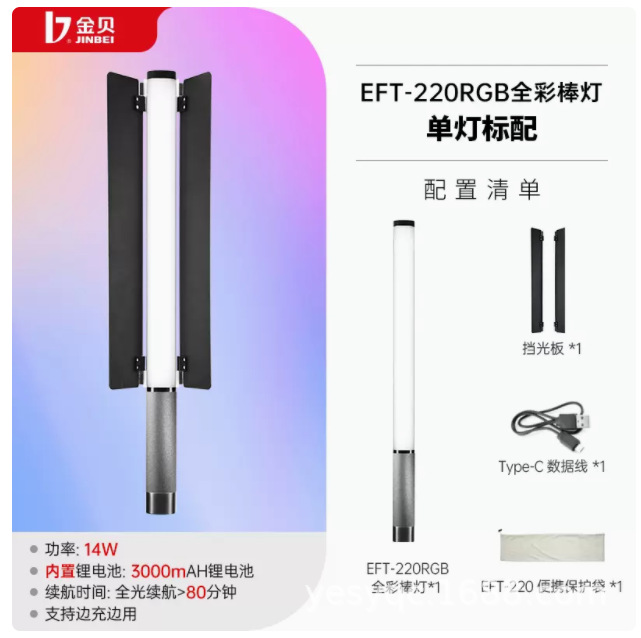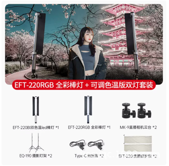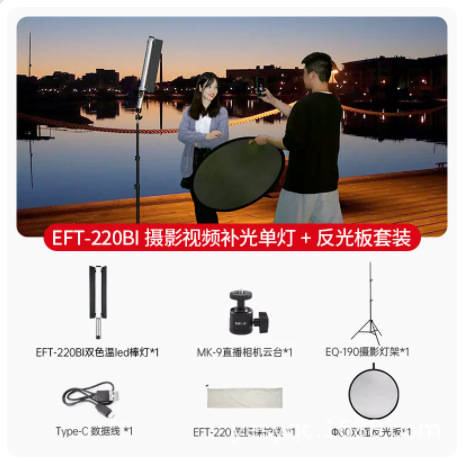 진베이 EFT220BI 더블 컬러 온도 라이트 스틱 LED 사진 스틱 라이트 모바일 핸드 헬드 라이트 보충 스틱 야외 초상화 라이브 방송스토어 가기