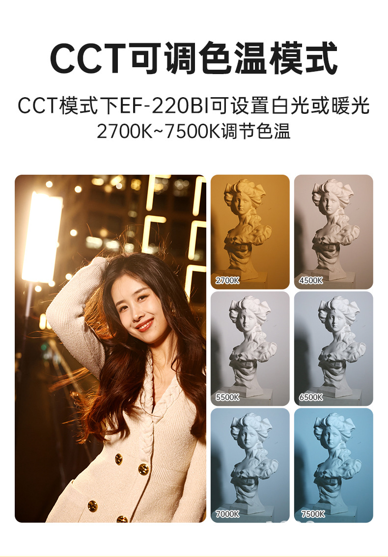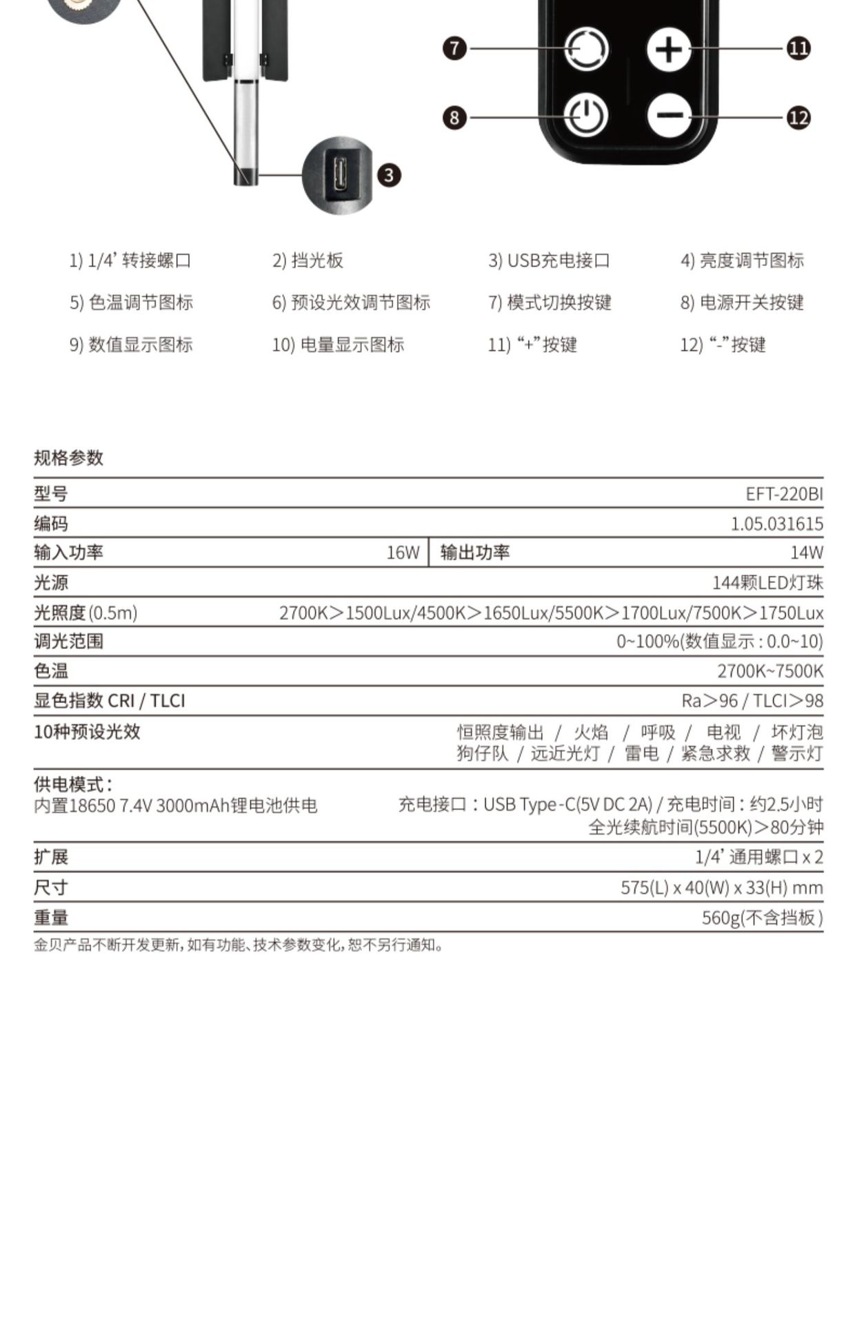• EFT-220BI 2 색 온도 바 램프 내장 리튬 배터리