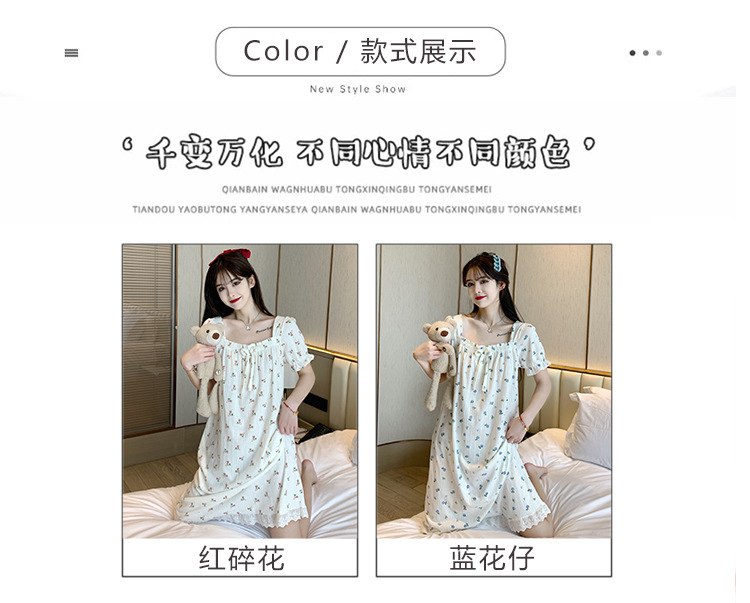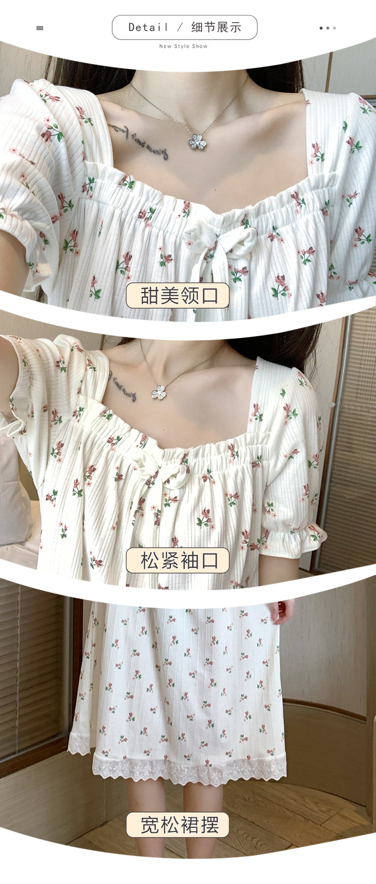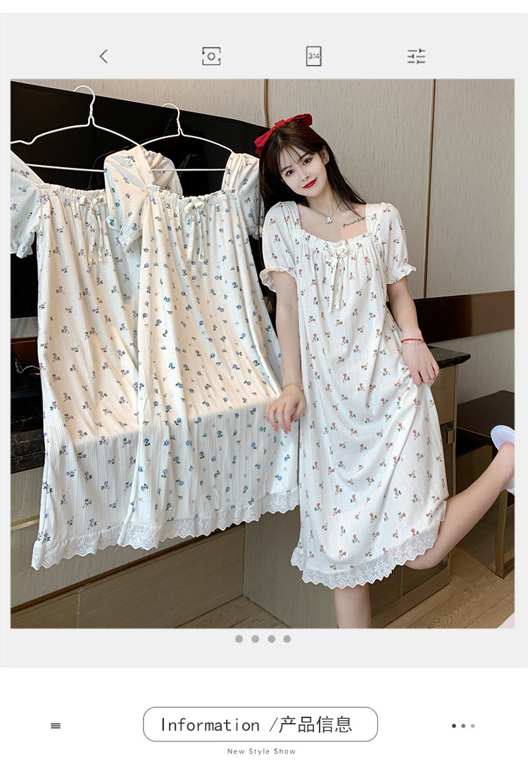 면 잠옷 여성용 여름 새로운 스위트 인 플로럴 반팔 중간 길이 잠옷 소녀의 홈웨어 얇은 겉옷스토어 가기