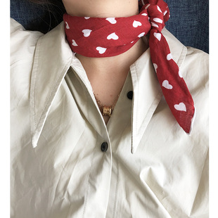 春秋季新款棉麻文艺爱心小方巾丝巾女小方巾搭配衬衫麻围巾发带女