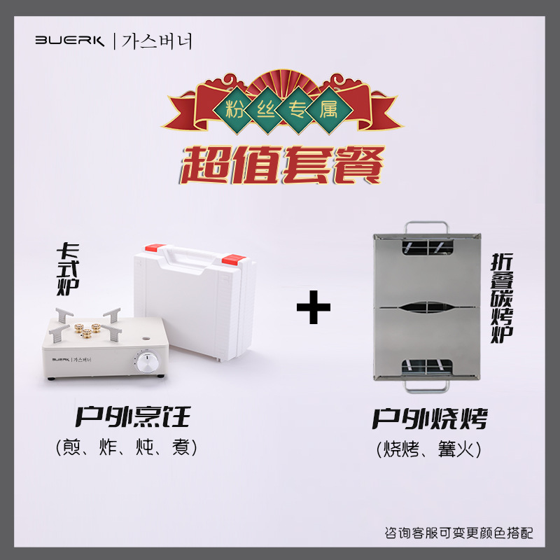 • 블루 화이트 + 스테인리스 접이식 카본 오븐 [조리하면서 꼬치를 굽으면서]