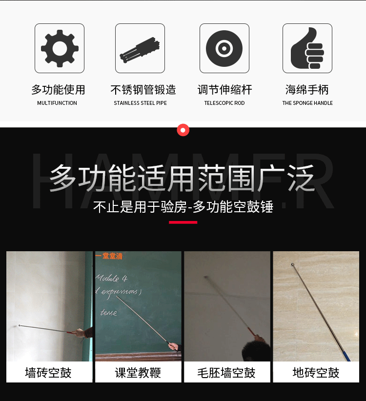 검사 도구 테스트 해머/가이드용 특수 텔레스코픽 깃대/교사용 교육 지침봉 공장 직판 벽 두드리기스토어 가기