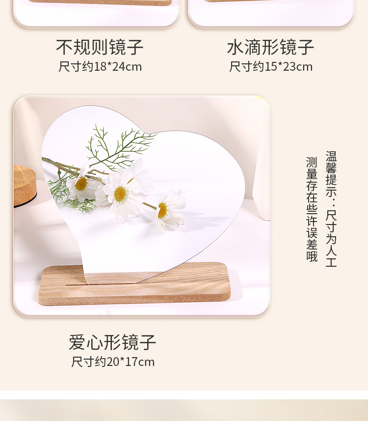 • [정사이즈 모양 없음] 거울 + 나무 받침대