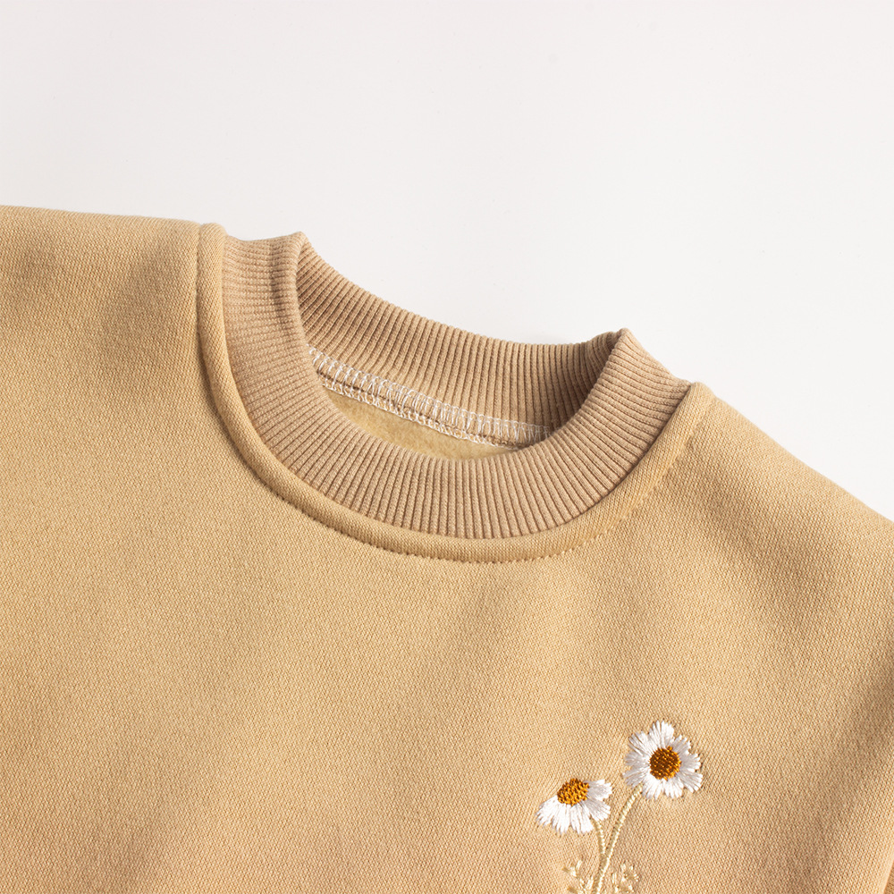 크로스 보더 핫 셀링 가을과 겨울 기모 스웨터 캐주얼 세트 국화 자수 유아용 어린이 투피스 의상